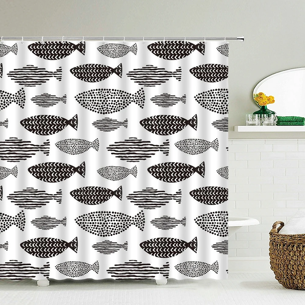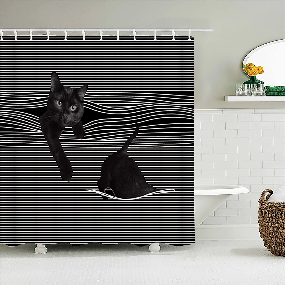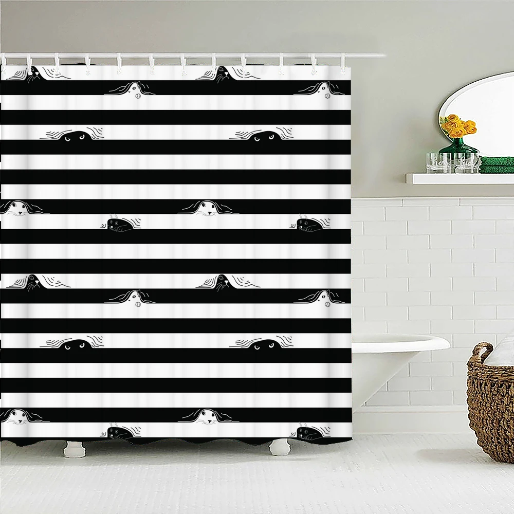 Черно-белая полосатая занавеска для душа с крючками, водонепроницае...