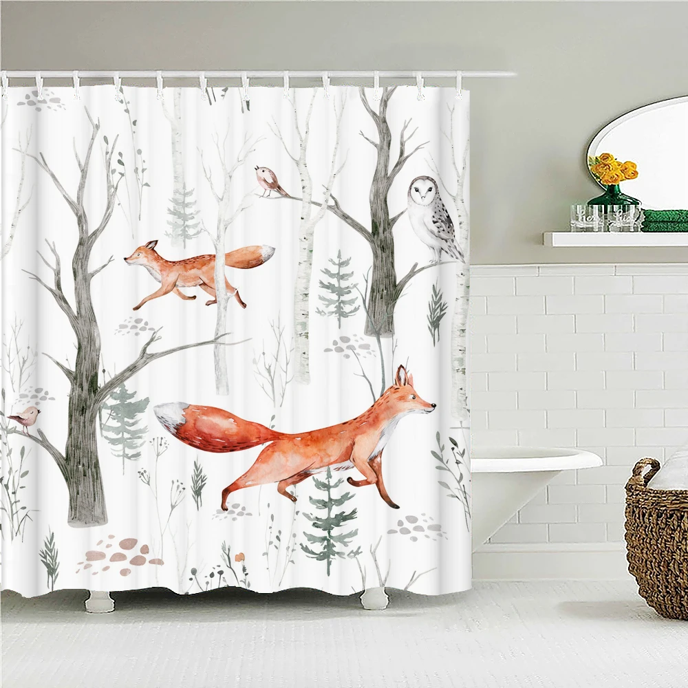 Шторы для душа с оленями и крючками, водонепроницаемые 3d занавески...