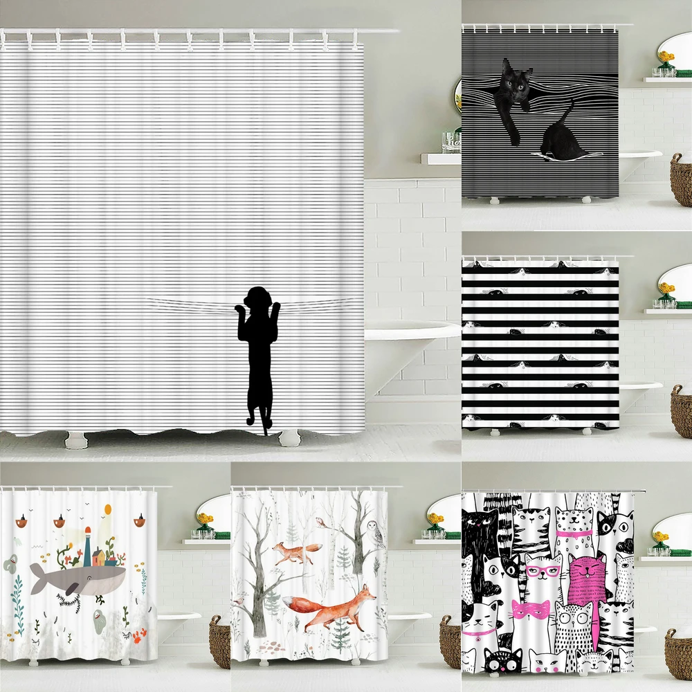 Занавеска для душа из полиэстера, водостойкая, с рисунком животных