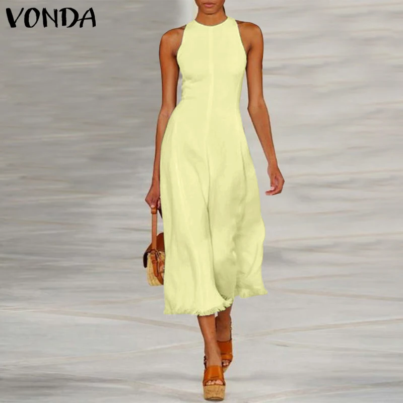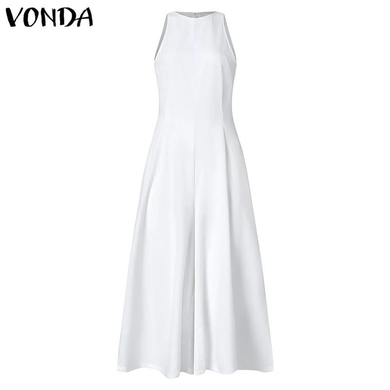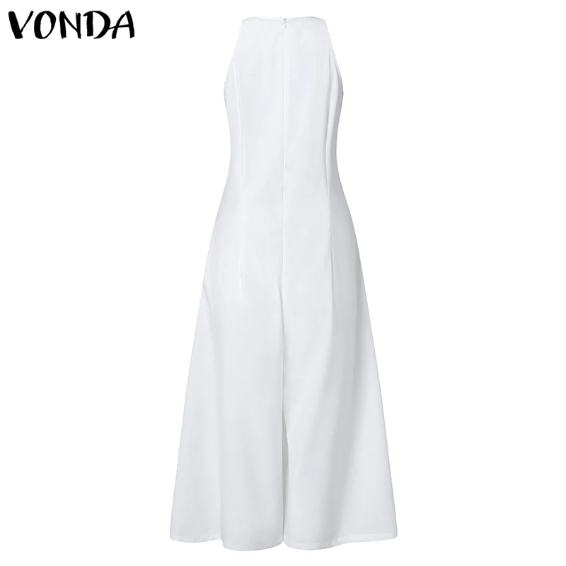 Женское платье 2021 VONDA, женские брюки с широкими штанинами, комбинезоны, повседневные брюки до щиколотки без рукавов, Комбинезоны на молнии, женские брюки