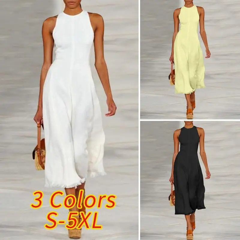 Женский летний сарафан, винтажные однотонные Асимметричные Длинные ...