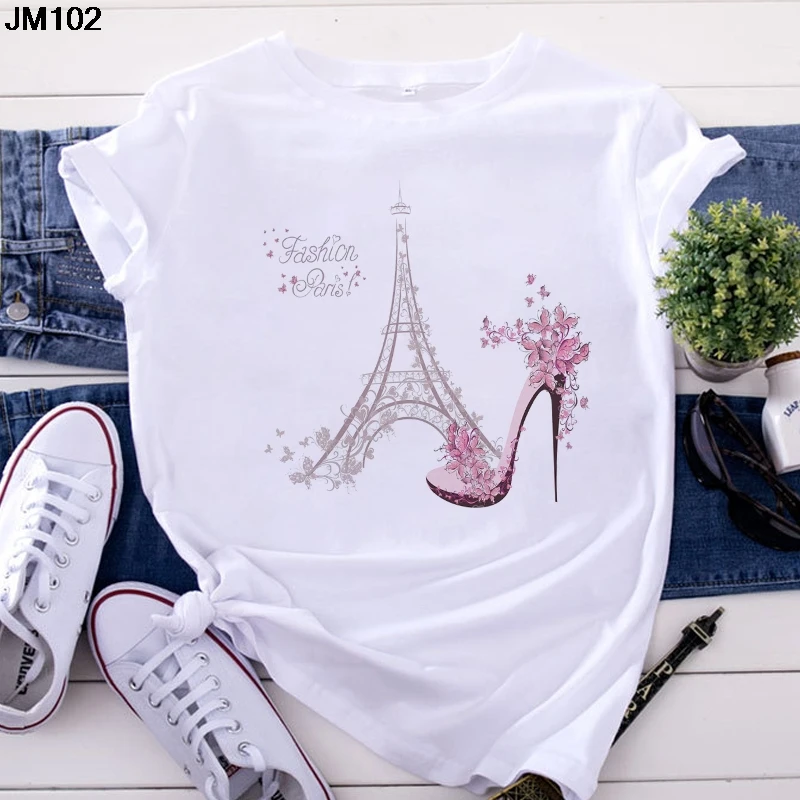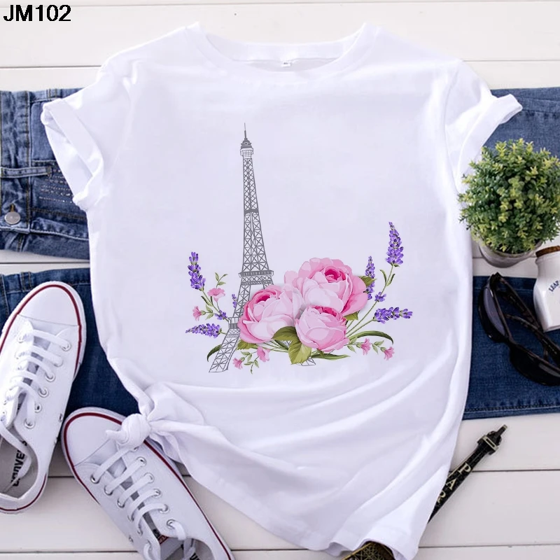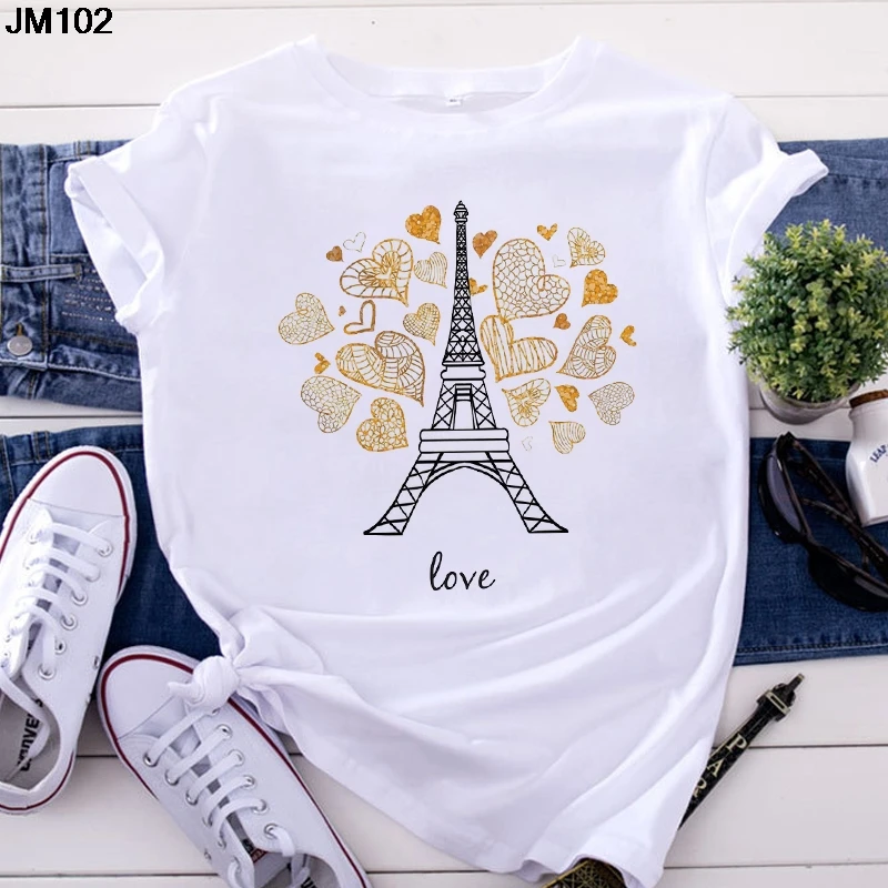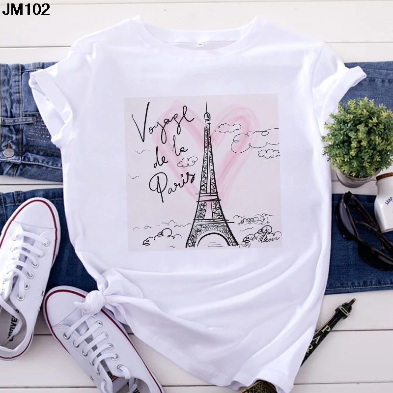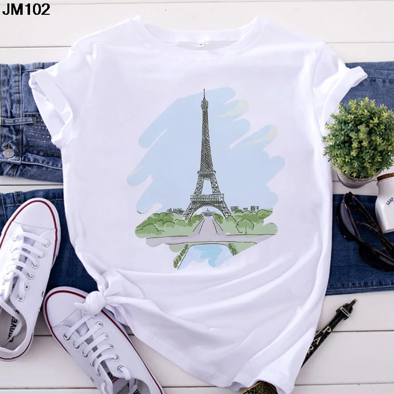 Футболка женская, с принтом Эйфелевой башни, с коротким рукавом, в ...