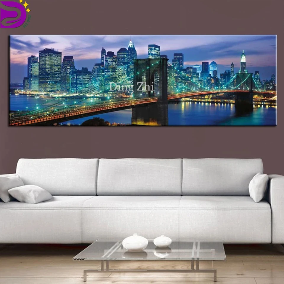 Алмазная живопись 5D сделай сам, большая картина с изображением оживленного мегаполиса, ночного пейзажа, полноразмерная мозаика с круглым мостом, вышивка крестиком
