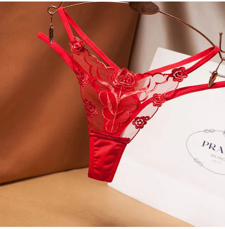 Сексуальные кружевные вышитые женские трусики, T-образные прозрачны...
