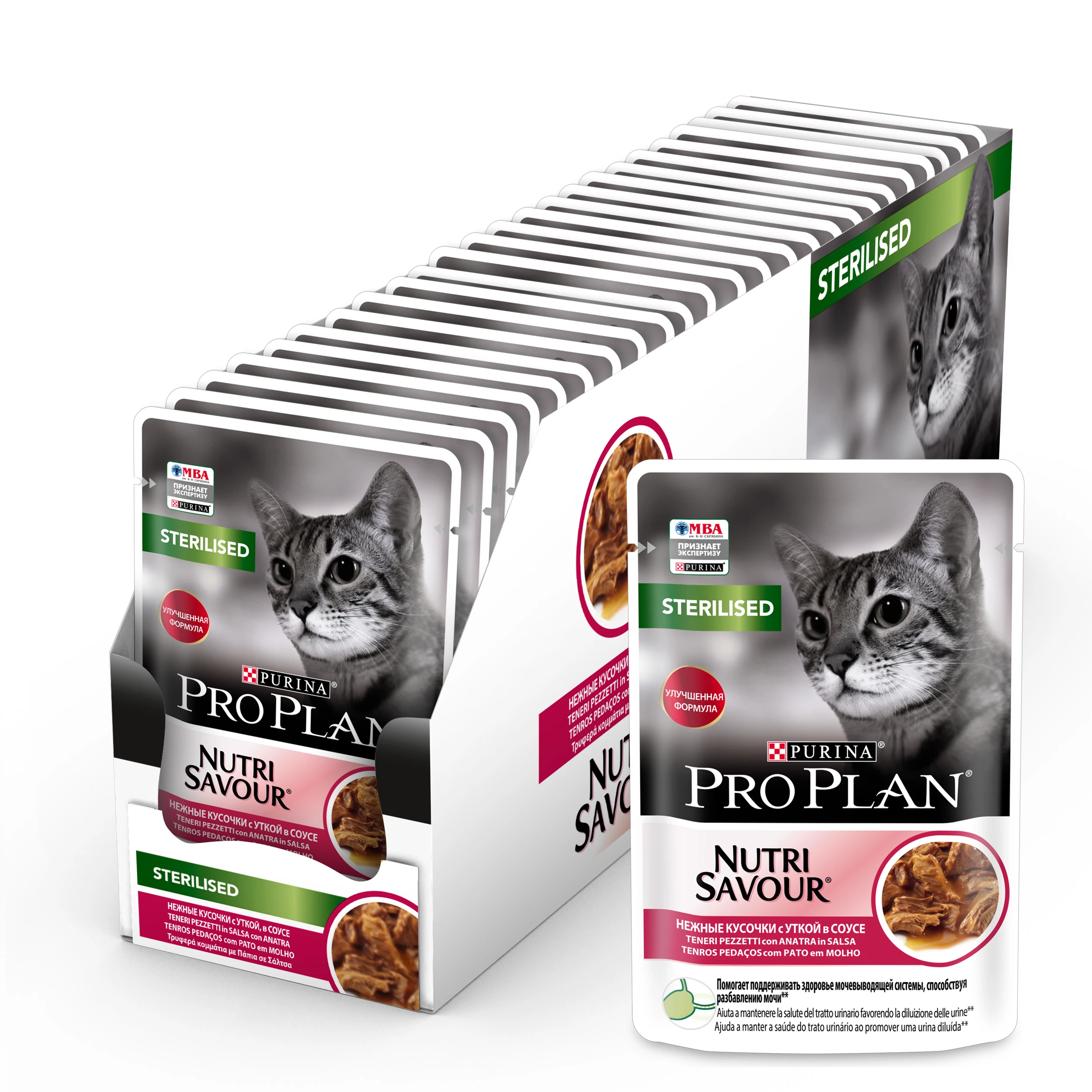 Влажный корм Pro Plan Nutri Savour Sterilised для стерилизованных кошек, с уткой в соусе, 85 г*26