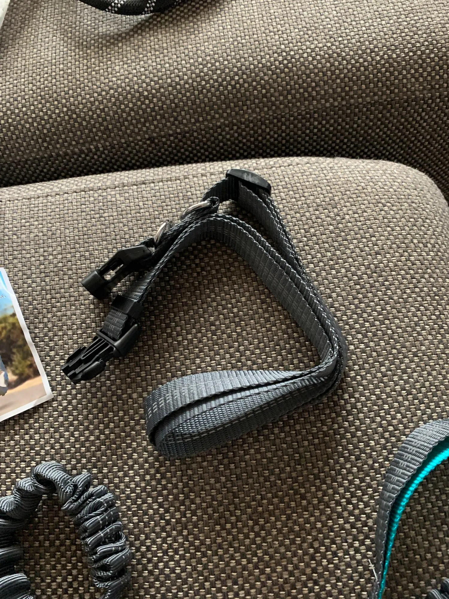 Qualidade excelente, a coleira é como na foto. Tem 2 elos no cinto do quadril, então é possível ainda afivelar outra coleira ou outras coisas no cinto. Um elo depois do primeiro elástico permite que você diminua o tamanho da coleira, trazendo o cachorro mais próximo de si durante a caminhada (foto 2). possui refletores nas alças para caminhar à noite. algo que poderia melhorar é algum tipo de proteção no cinto para a nossa cintura. Cheguei da corrida com a pele da barriga um pouco avermelhada do atrito com a coleira.