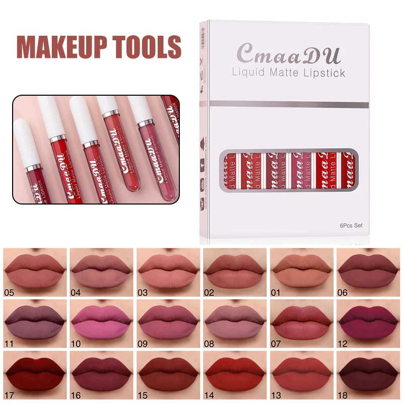 6 шт., бархатный Набор губной помады, стойкая антипригарная чашка, не выцветает, макияж, косметика, набор для девушек и женщин, MU8669
