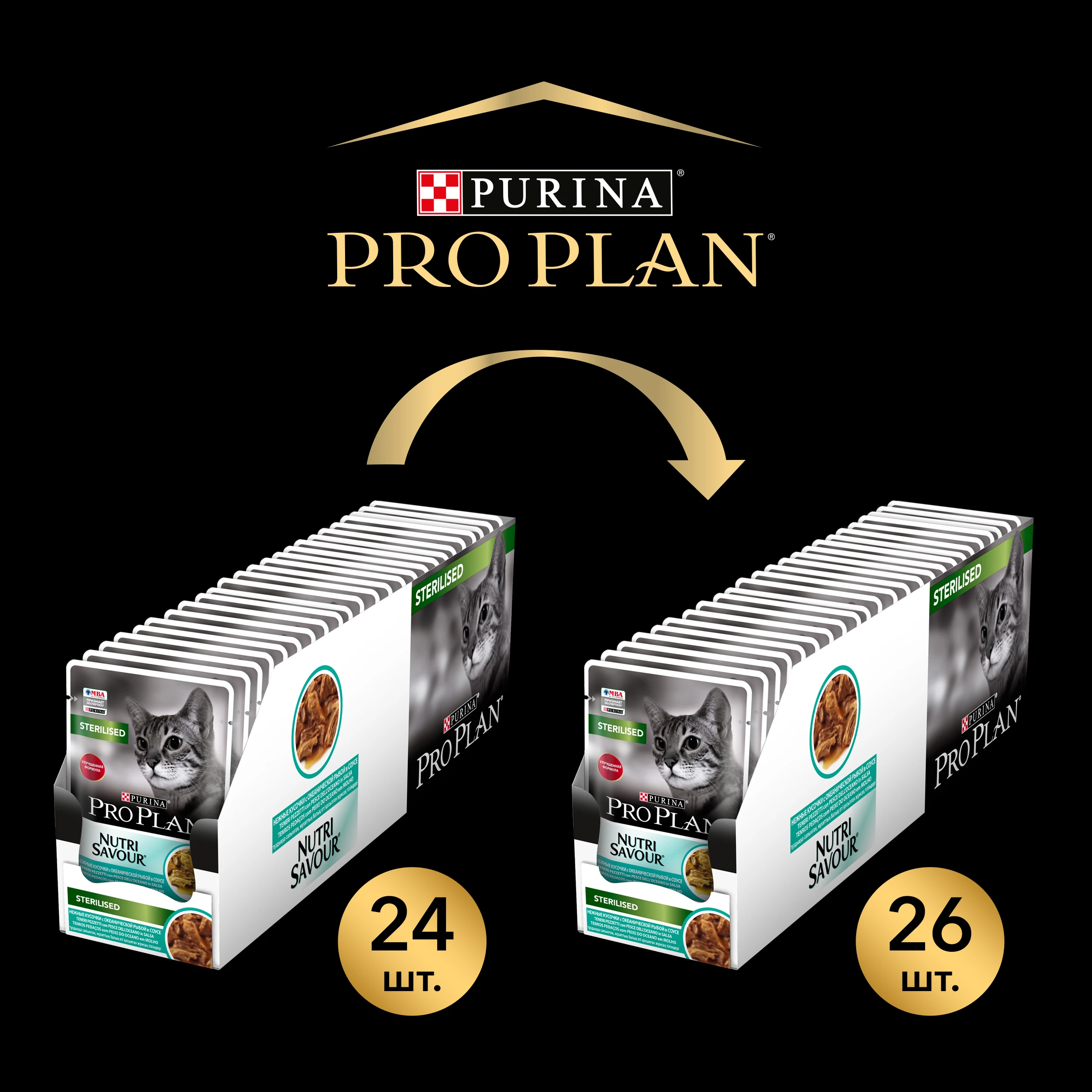Влажный корм Pro Plan Nutri Savour Sterilised для стерилизованных кошек, с океанической рыбой в соусе, 85 г*26