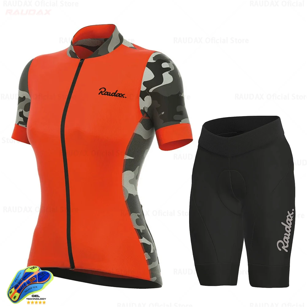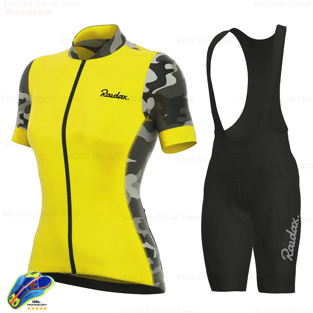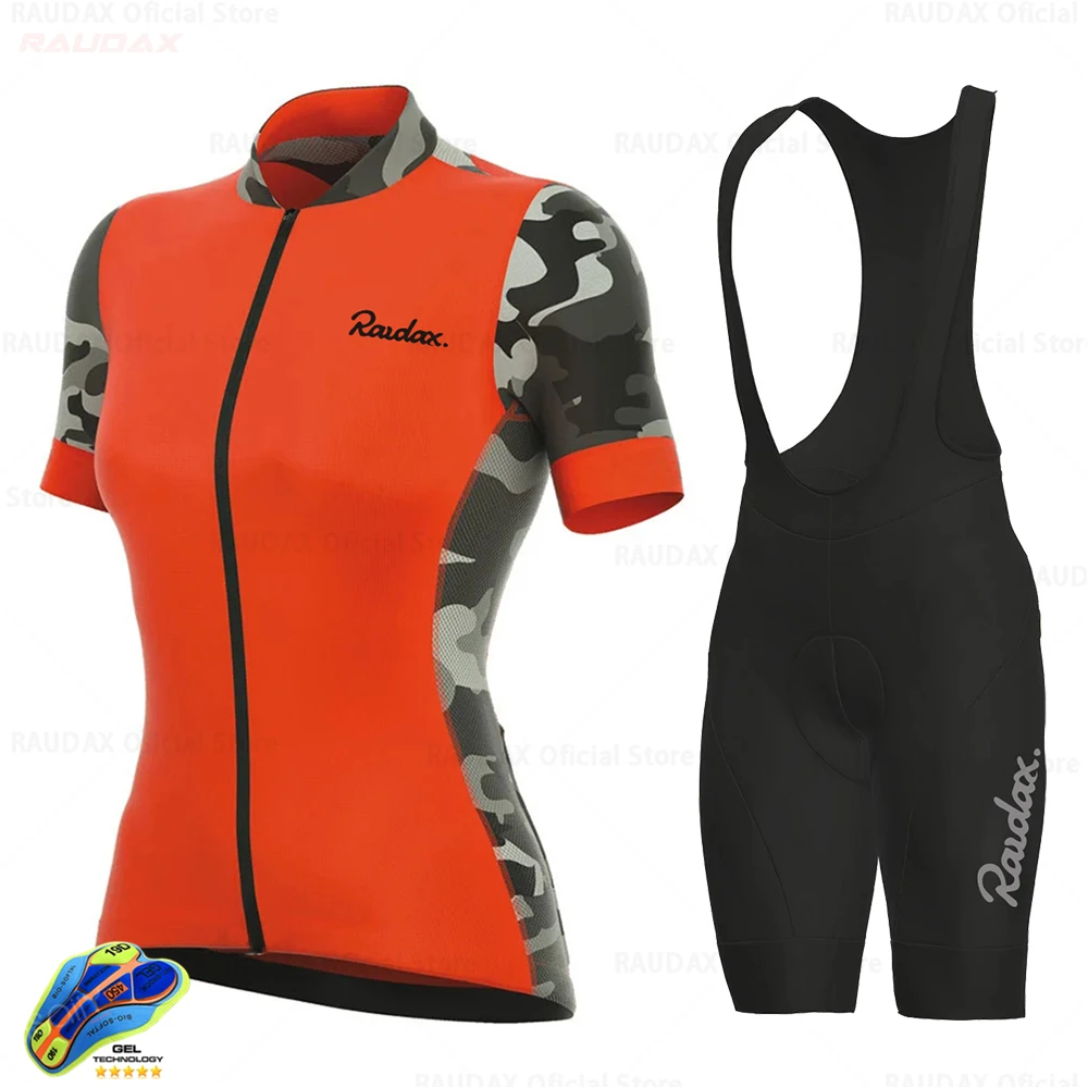 Женская велосипедная одежда, летний велосипедный комплект из Джерси, модель 2021 Raudax, камуфляжный дорожный велосипед, дышащий комплект с шортами и нагрудником