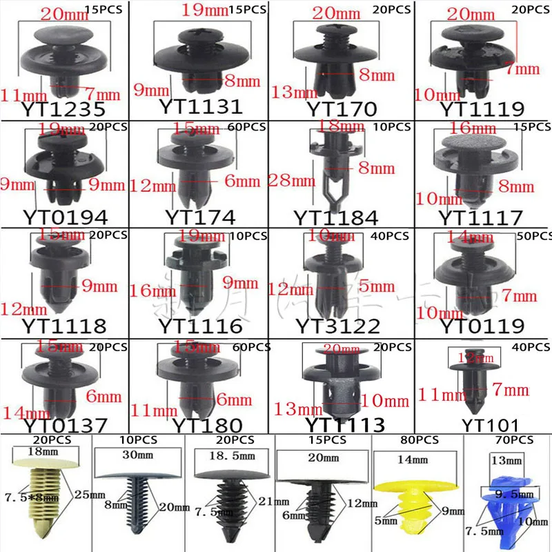 Описание изделия: характеристики упаковки: 650 шт. Упаковка: PP категория коробки: 22 вида Тип материала: пластик Тип изделия: застежка Особенности: - 22 различных крепежа для удовлетворения потребностей различных частей автомобиля. -Широко используется для автомобильного крыла, бампера, двери или другой поверхности автомобиля. -Высококачественный пластиковый материал, прочный и длительный срок службы. Примечание: Все транспортные средства имеют ряд различных зажимов, используемых на них. У разных моделей разные размеры и универсальных зажимов нет. Пожалуйста, проверьте как можно больше перед покупкой. Посылка: 650 шт.