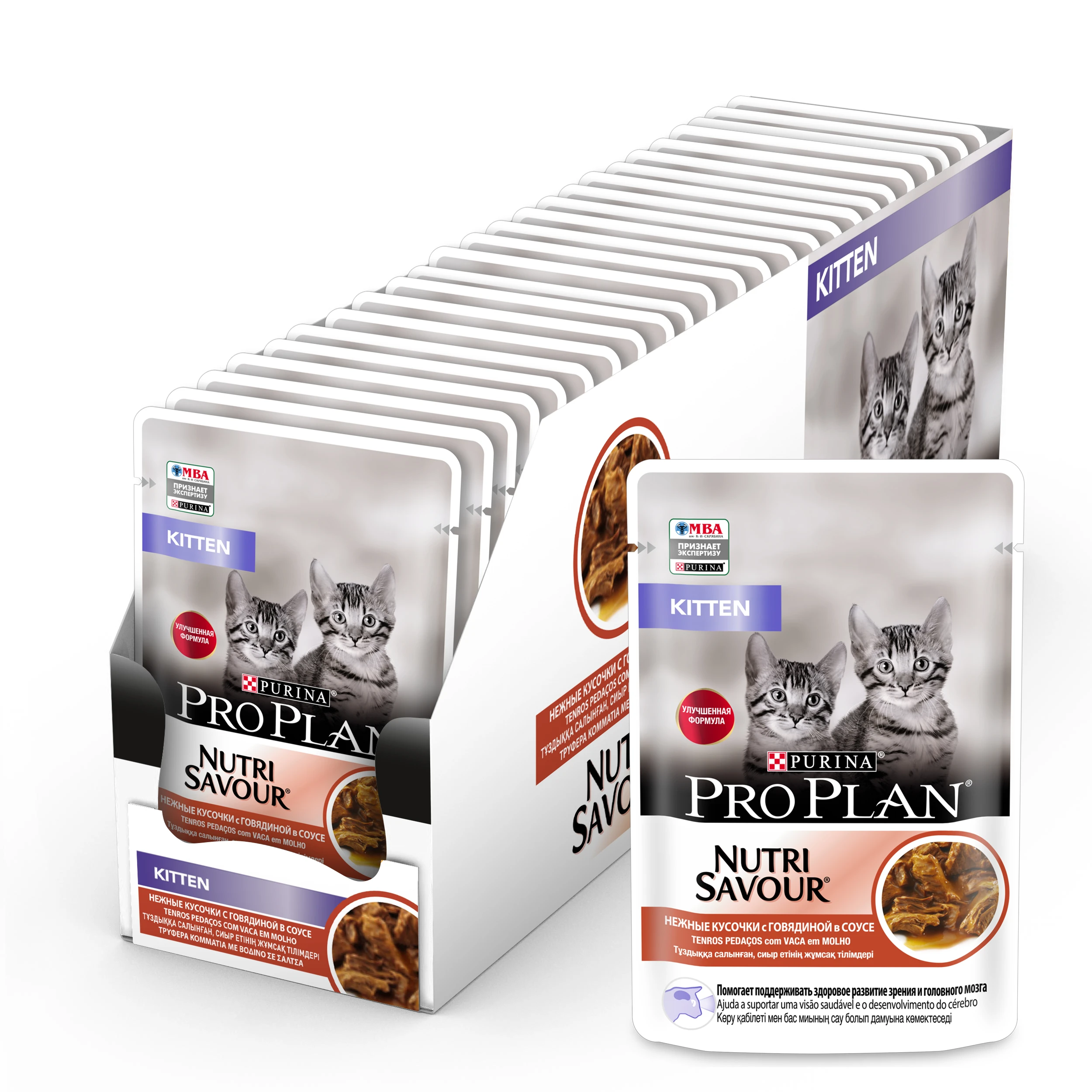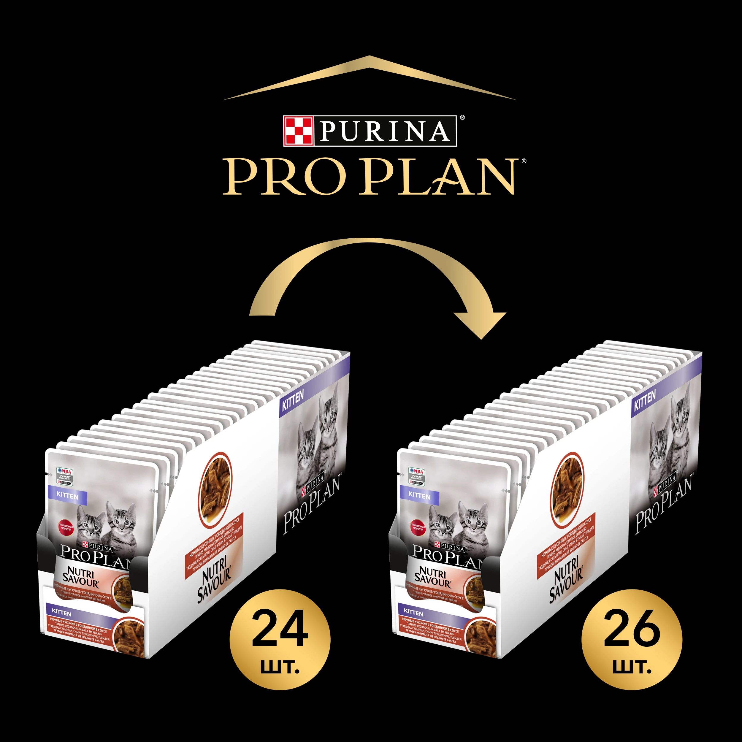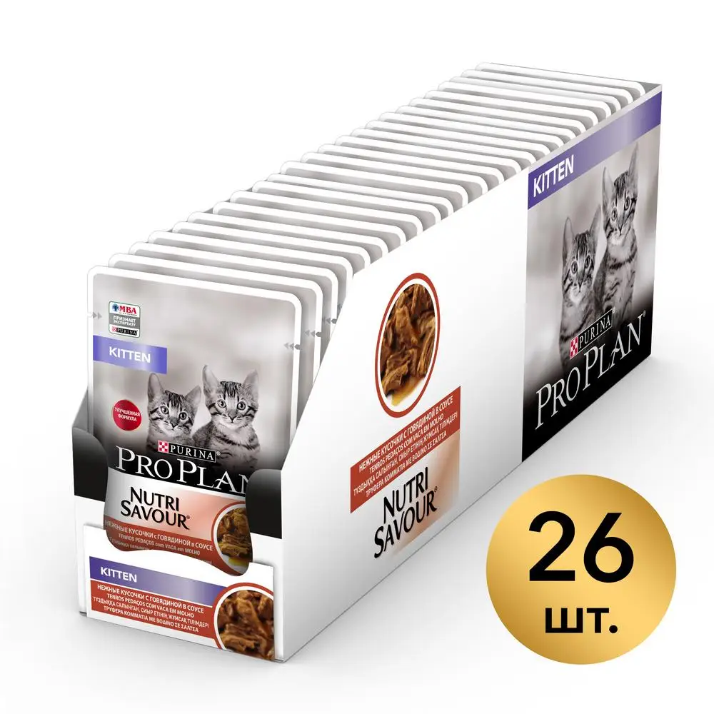 Влажный корм Pro Plan Nutri Savour Kitten для котят, с говядиной в соусе, Пауч, 85 г*26
