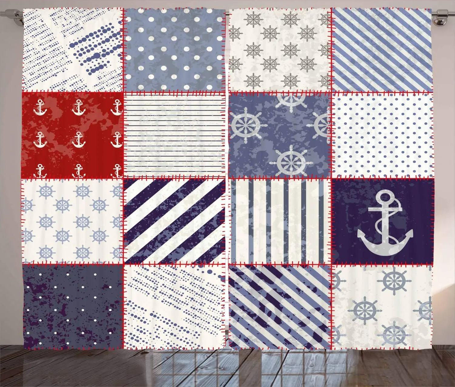 Темно-синие полосатые Роскошные оконные шторы с якорем товары для д...