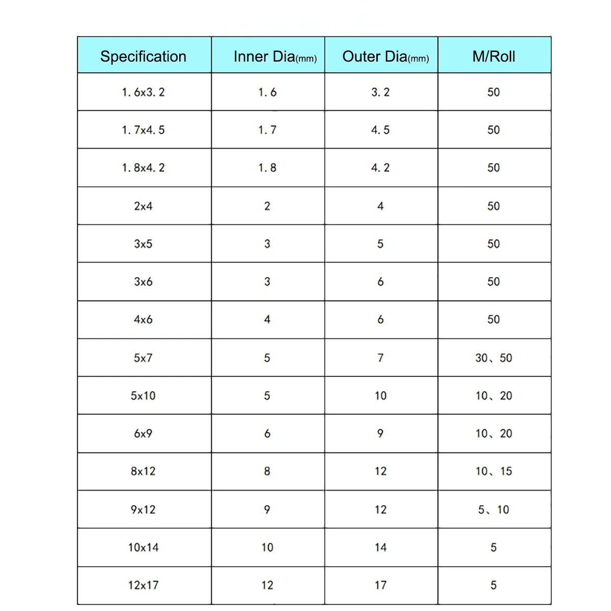 Характеристики продукта: 3x5 означает, что внутренний диаметр 3 мм, внешний диаметр 5 мм и так далее
