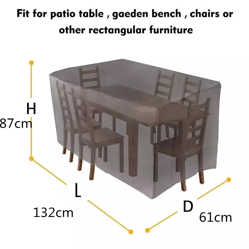Особенности: ветронепроницаемая водонепроницаемая защита от дождя и снега, защита от ветра, защита от ультрафиолета 1. Чехлы для мебели в патио достаточно большие, чтобы покрыть все виды наружной мебели для патио, стола, скамейки, журнального столика, стульев или другой прямоугольной мебели. Проверьте размеры мебели для правильной посадки. 2. Изготовлен из нейлоновой ткани Оксфорд высокой плотности 210D, которая устойчива к атмосферным воздействиям и пыли, эффективно предотвращает промокание мебели из-за дождя и снега. 3. На кромке мебельной крышки есть веревка на шнурке. Даже в суровых условиях Ваша мебель может быть безопасной, чистой и сухой. 4. Изготовлен из удивительного гидрофобного материала и двойных связанных краев обеспечивает полную защиту крышки от растрескивания. Внутренний слой имеет УФ-покрытие, обеспечивает исключительную защиту под солнечным светом. 5. С удобными мешки для хранения, патио мебель крышка легко складывать, хранить и носить, не занимают места. Примечание: Если ветер очень сильный (например, ураган), мы предлагаем вам разместить некоторые тяжелые предметы на крышке наружного стола, чтобы лучше предотвратить удар покрытия.