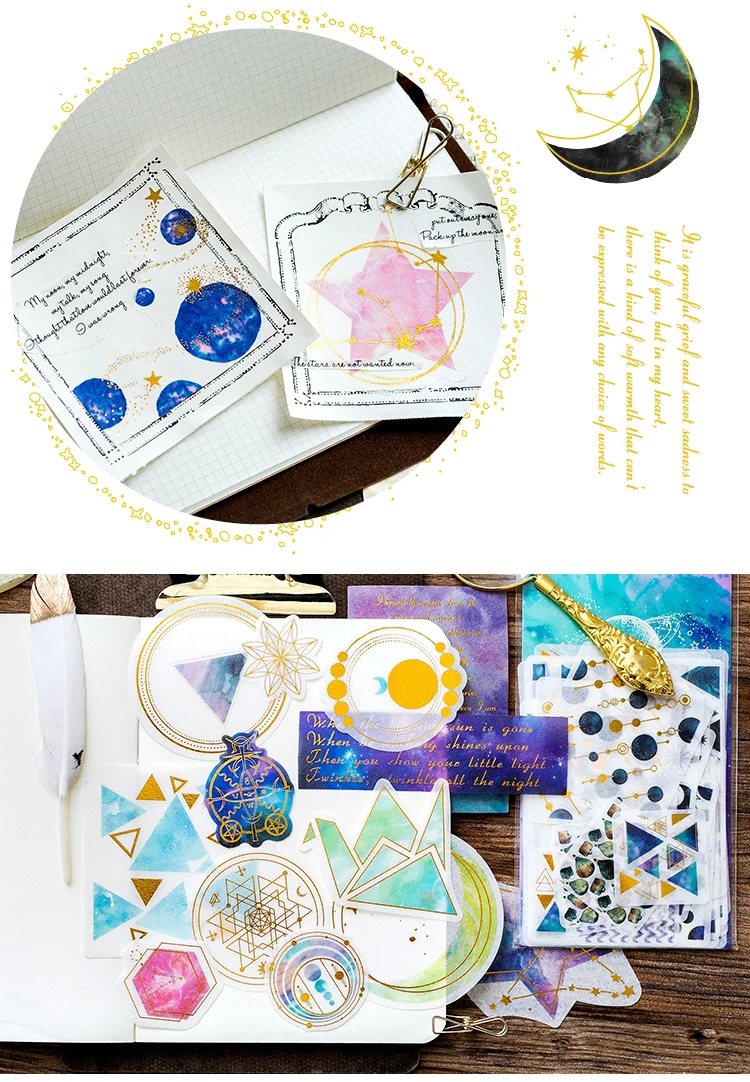 Ночные звезды золочение декоративные наклейки из бумаги васи Скрапб...