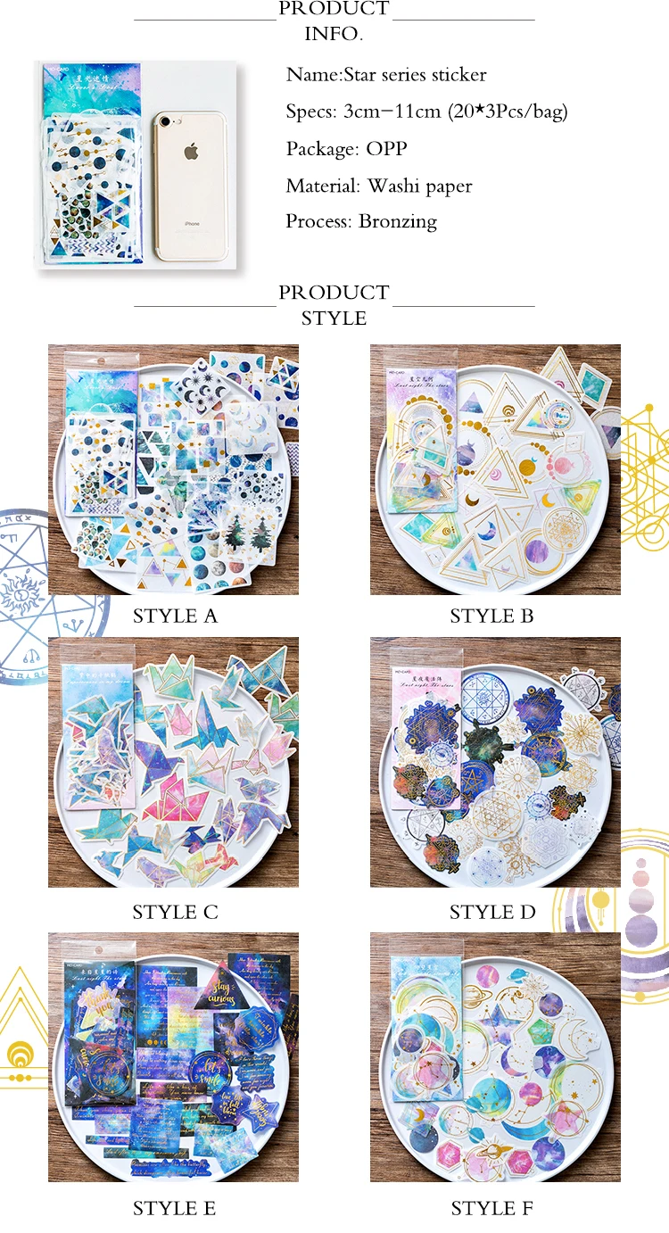 60 шт.упак. звезды золочение декоративные наклейки из бумаги васи С...