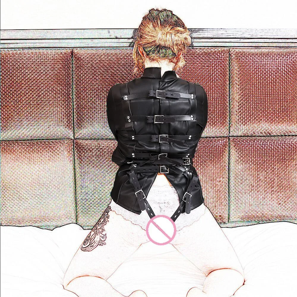Кожа секс удерживающий смирительная рубашка, регулируемый ремень с длинными рукавами прямая куртка бандаж для рук ведомого Косплей Костюм женский секс-игрушки