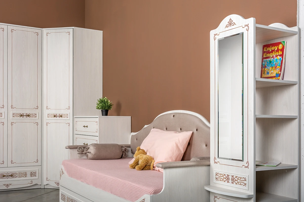 Комфортная кроватка, стол письменный, полка, комод, стеллаж, пенал и два шкафа, угловой и широкий - это комплект мебели на любой возраст.