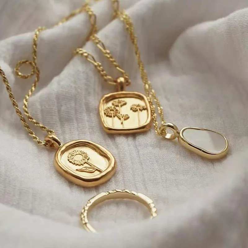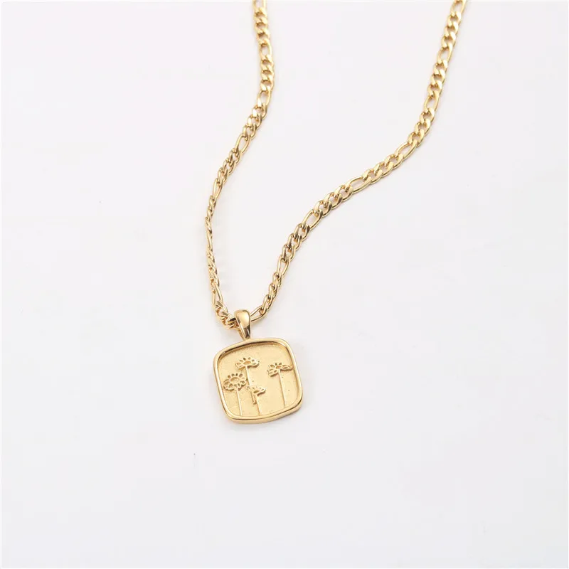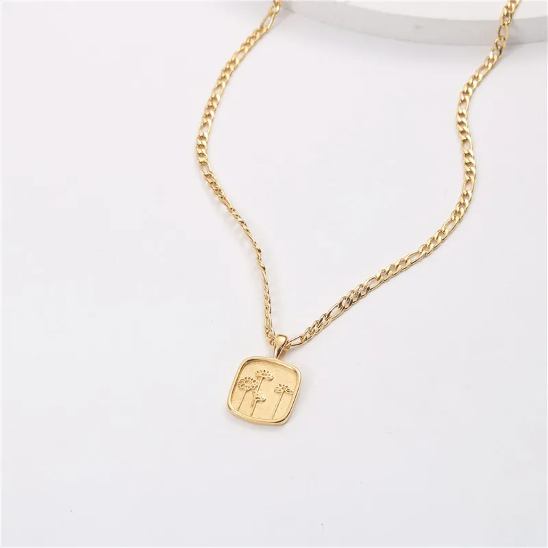 Женская цепочка из нержавеющей стали с подвеской в виде цветка и ко...