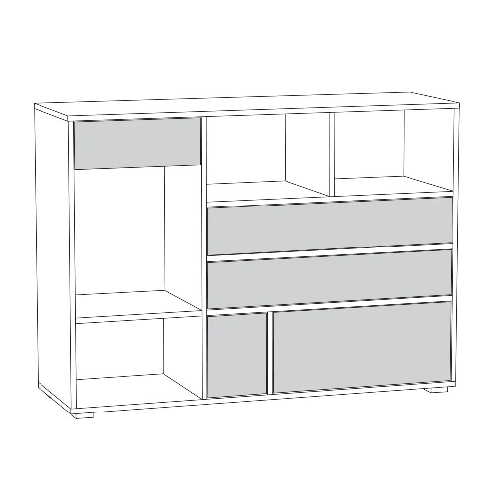 Удобное расположение составляющих комод деталей, их различная форма и вместимость, помогают организовать идеальный порядок хранения.