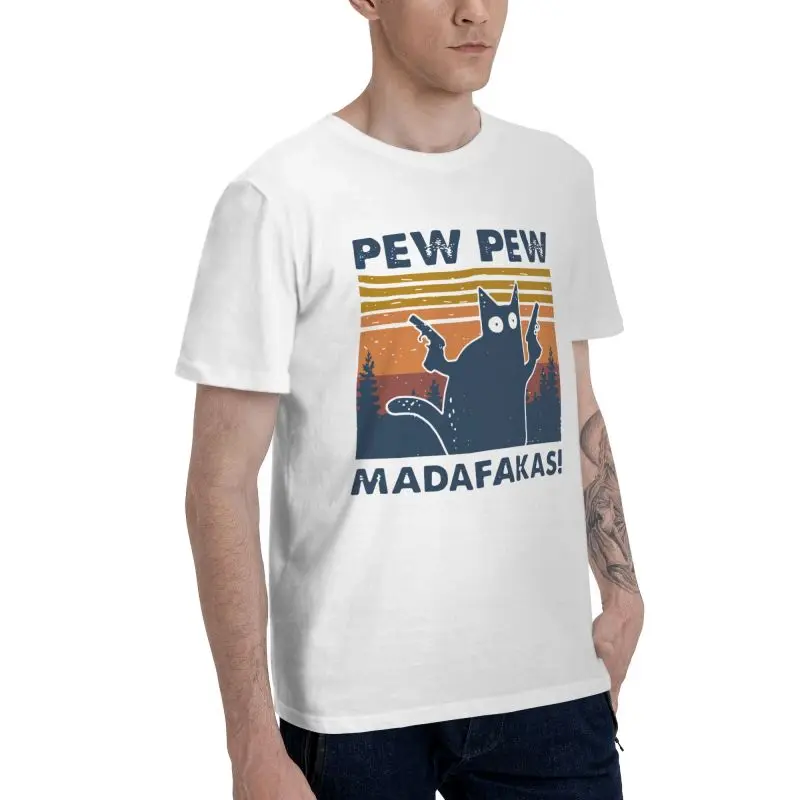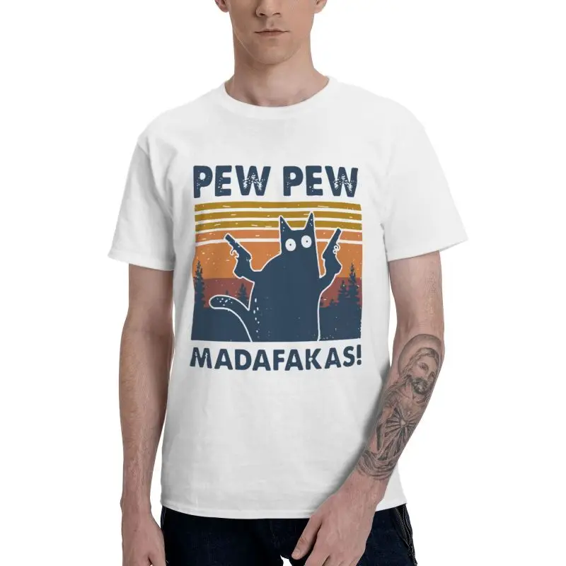 Футболка мужская с надписью Pew Madafakas, модная тенниска из 100% хлопка, винтажная майка с коротким рукавом и надписью Crazy Cat, подарок, Merch