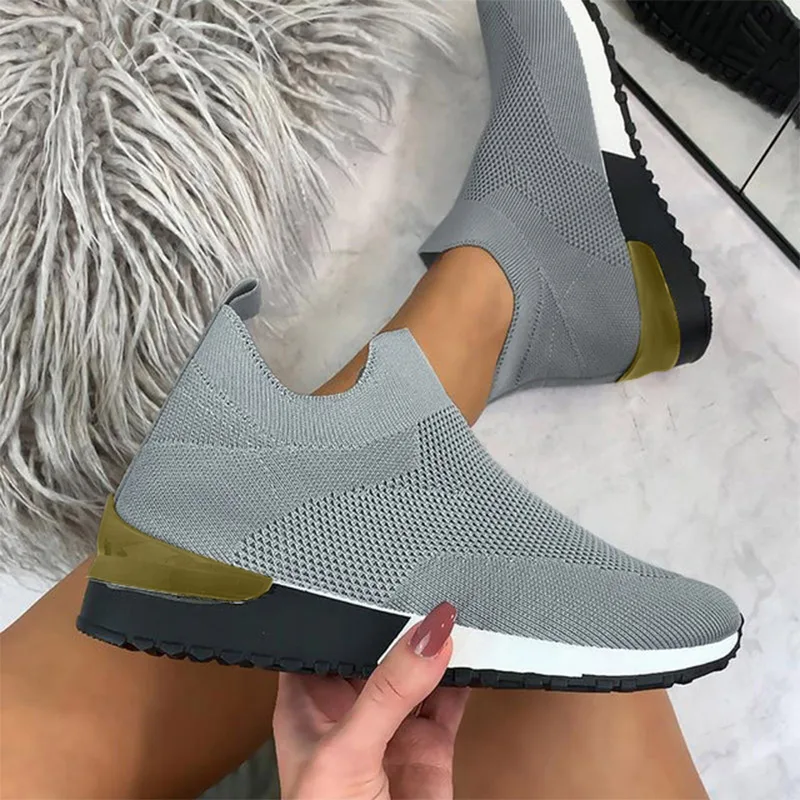Женские кроссовки для бега, весна 2021, женские кроссовки без шнуровки, вязаные, дышащие, повседневные, женские кроссовки большого размера, на плоской вулканизированной подошве