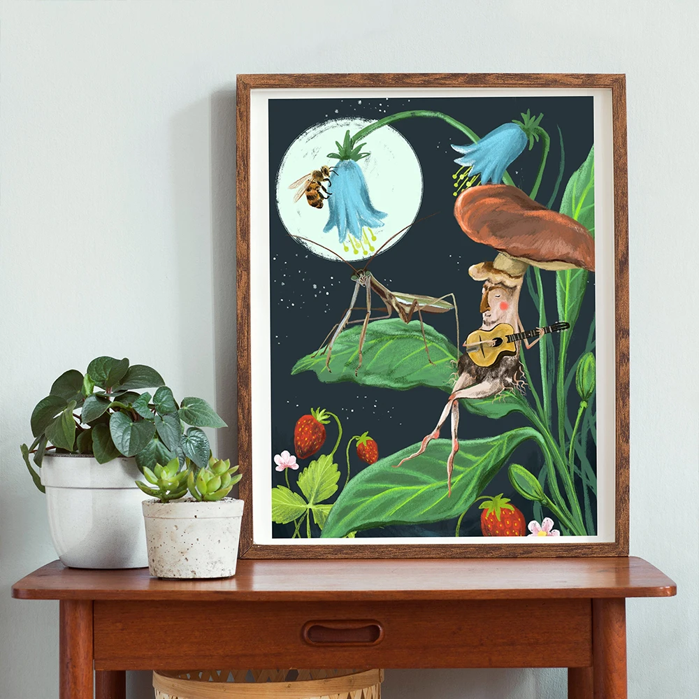 Постер Moonlit в виде гриба для концерта, рисунок, интересный холст...