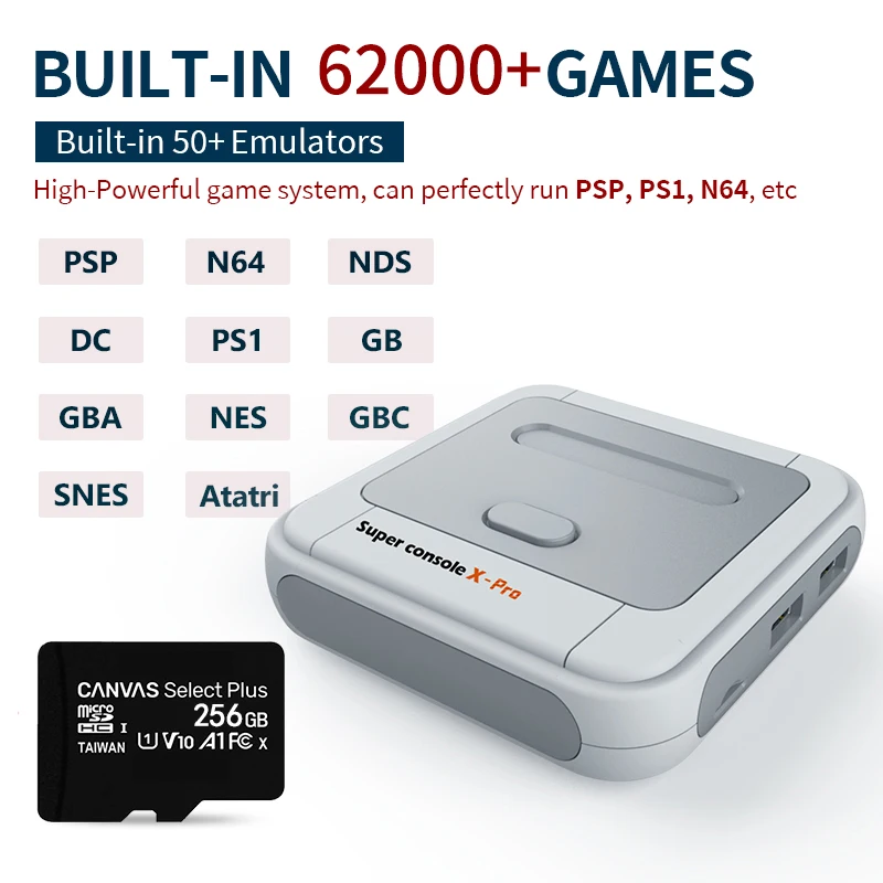 Мощная игровая система, Предустановленная 62000 + игр и 50 + эмуляторов, может отлично запускать PSP, PS1, N64 и т. д.