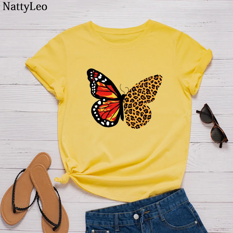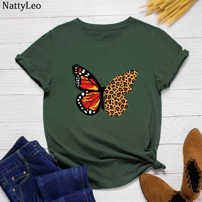 Размера плюс рубашка женская пикантная обувь с принтом бабочка, футболка с О-образным вырезом топы, футболки с короткими рукавами и рисунком из 100% хлопок футболки больших размеров Свободная одежда из хлопка