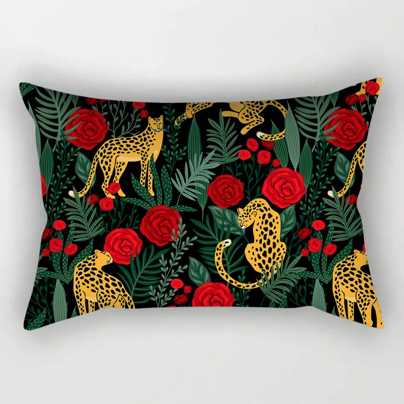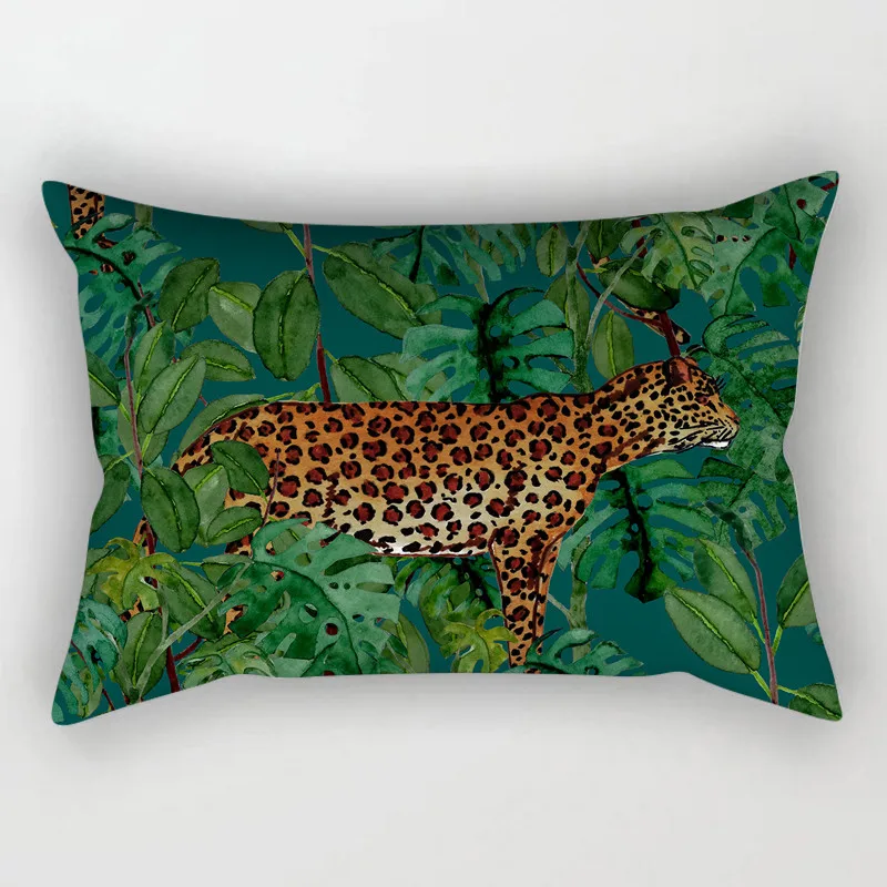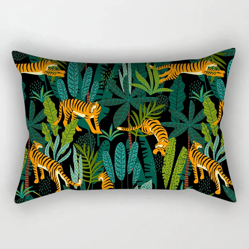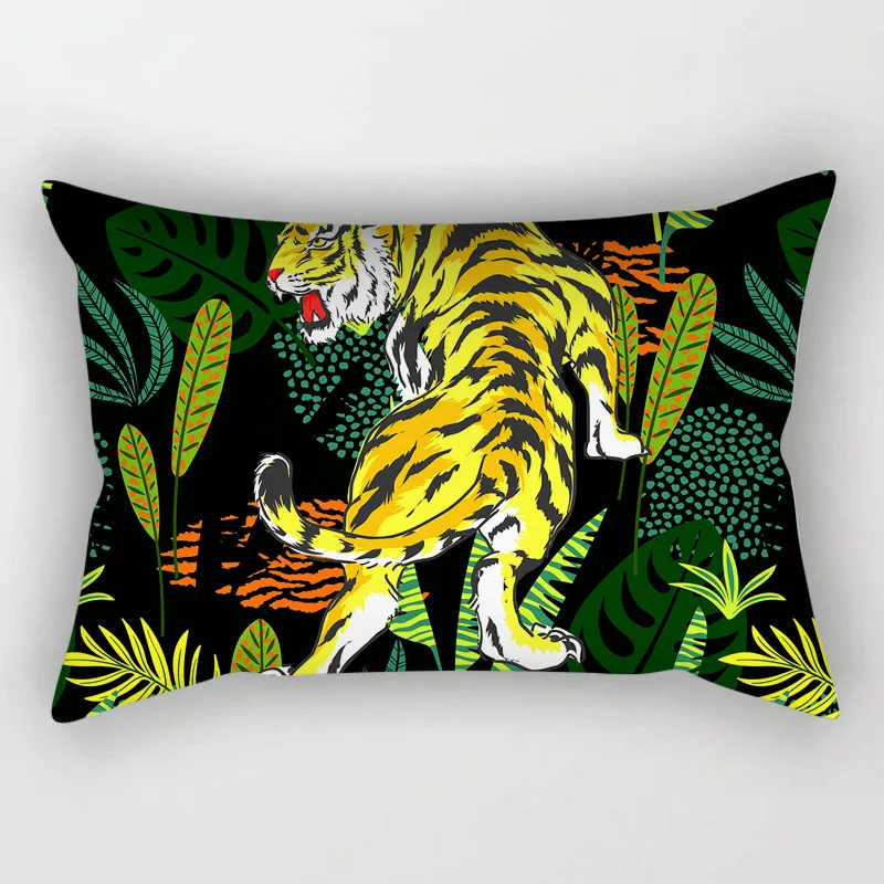 Джунгли с тигром, леопардом, Наволочка на подушку 30x50 тропические растения мультипликационным мотивом Декоративные диванные подушки наволочка из полиэстера