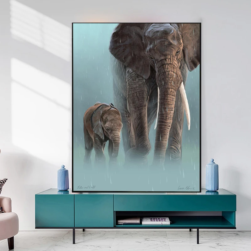 Современная картина со слоном мать и ребенок, животное, холст, живопись, Настенная картина для гостиной, домашний декор