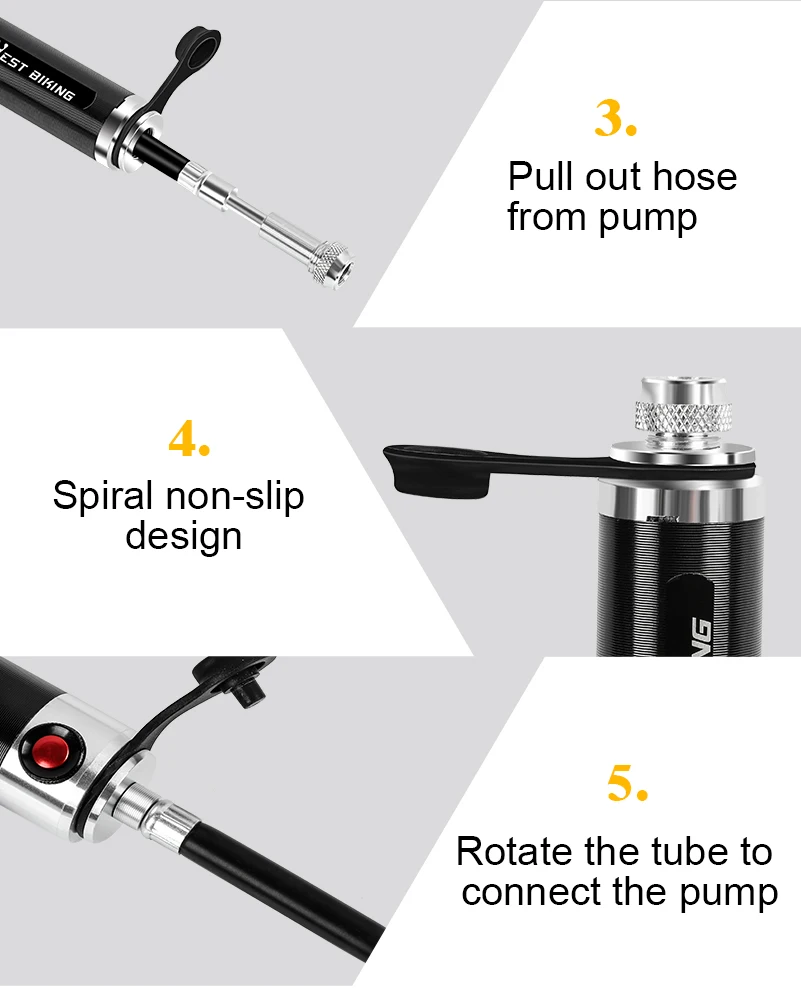 1. С монтажным кронштейном, легко крепится к велосипеду2. С шариковой иглой, чтобы надуть футбольные мячи, баскетбольные мячи и многое другое