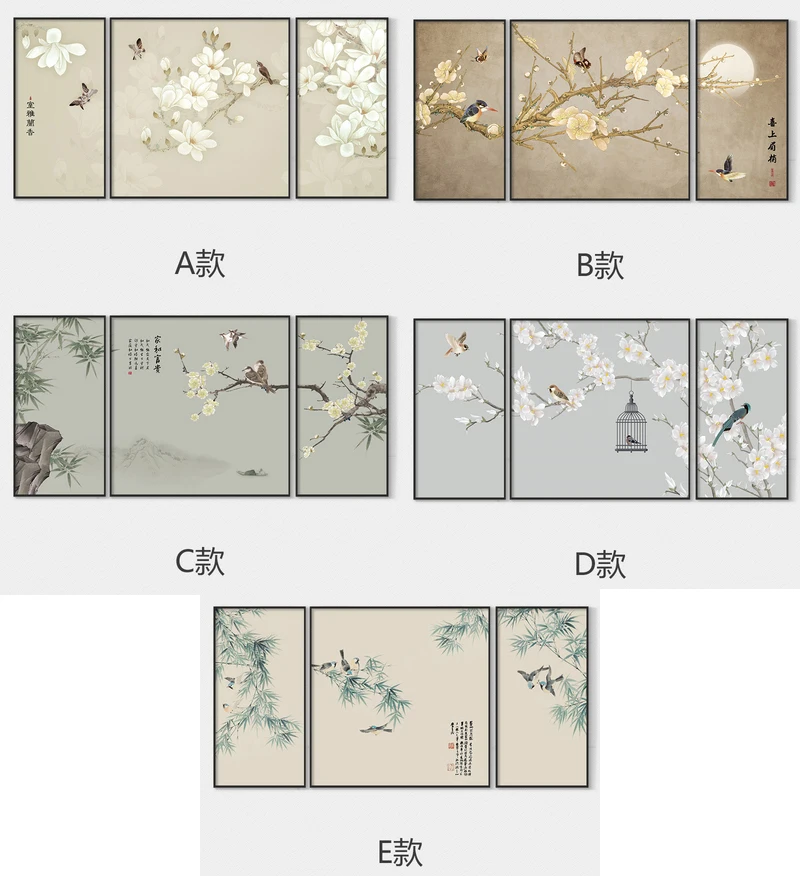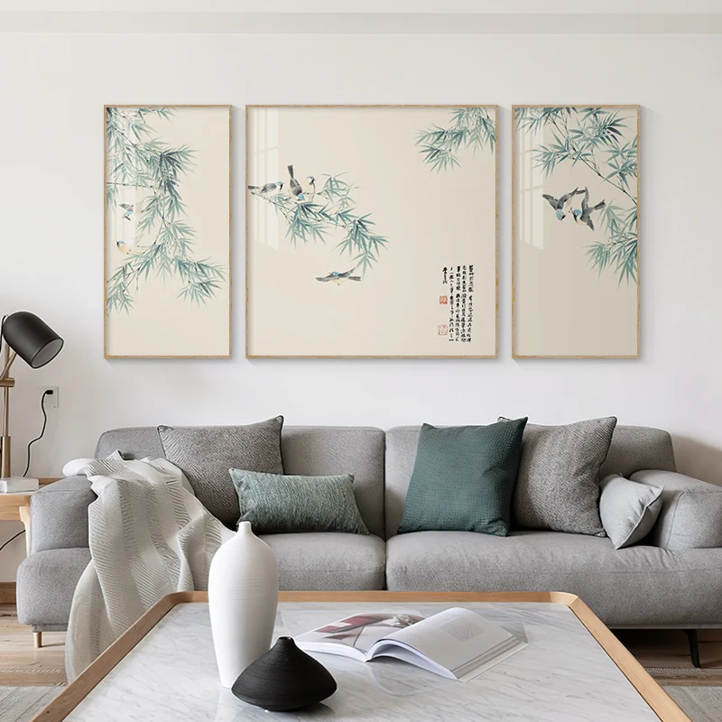 Плакаты настенный китайский арт на холсте, с изображением магнолии, птицы, бабочки, бамбука, для кабинета, для гостиной, офиса