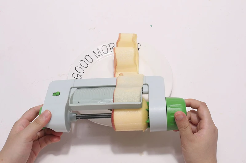 Это приспособление для нарезки овощей изготовлено с помощью тонких острых резаков, которые нарезают овощи и фрукты на тонкие пластины. Слайсер может разрезать множество овощей и фруктов, таких как картофель, кабачки, свекла, яблоки, груши и многое другое.
