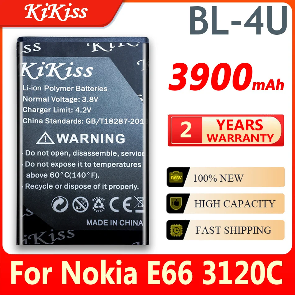 KiKiss BL-4U литий-полимерный аккумулятор для Nokia E66 3120C 6212C 8900 6600S E75 5730XM 5330XM 8800SA 8800CA BL 4U 3900mAh