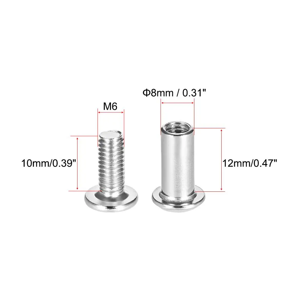 Особенность: это кожаный Биндер для скрапбукинга пояса. Они отлично подходят для любой кожаной работы на заказ. Можно зафиксировать на концах ремня, фиксированная и декоративная посылка для сумки. Это также вид мебельной фурнитуры, в основном для комбинирования, подключения и фиксации шкафа/шкафа. Параметры: Название продукта: винт пост Материал: нержавеющая Сталь основной Цвет: Серебряный тон головки винта Диаметр: 12,8 мм/0,5 "Fit отверстие Диаметр: 8 мм/0,31" Шестигранная Ширина: 4 мм/0,16 "Посылка: 5 комплектов x винт Примечание: для плотного прилегания, Ваше отверстие должно быть равно или немного меньше, чем диаметр штифта (немного меньше или равен 8 мм).
