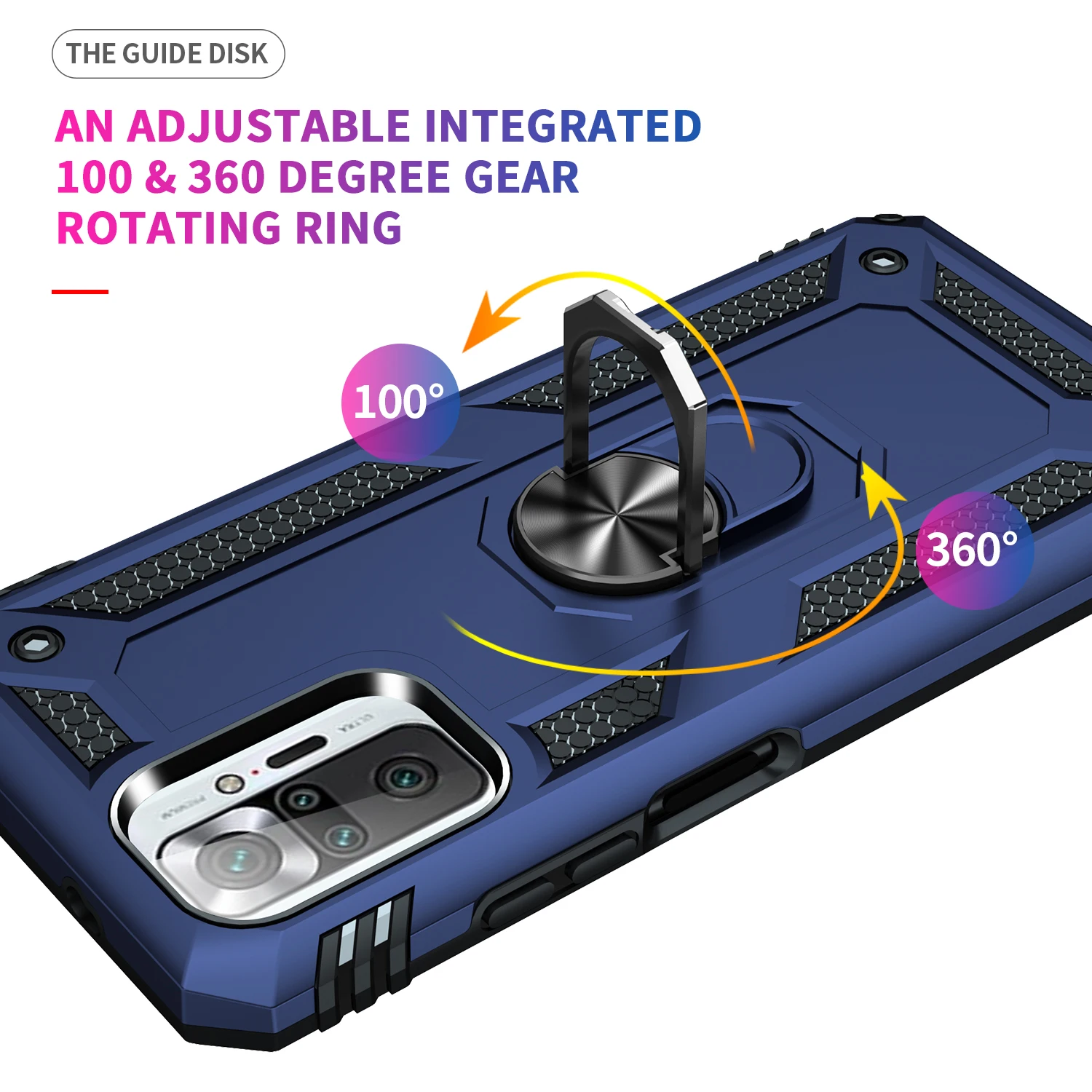 Противоударный Магнитный чехол для Xiaomi Redmi Note 10 Pro Max, 10S, с кольцом-подставкой, защита от падения