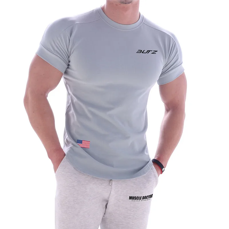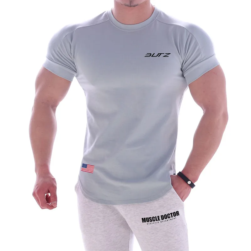 Новинка 2021, Спортивная Мужская футболка для бега, Мужская футболка для тренажерного зала, бодибилдинга, одежда для фитнеса, хлопковая дышащая Спортивная футболка для бега