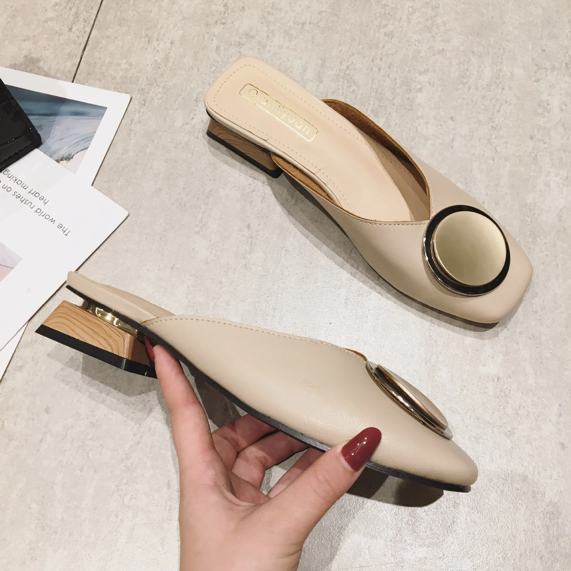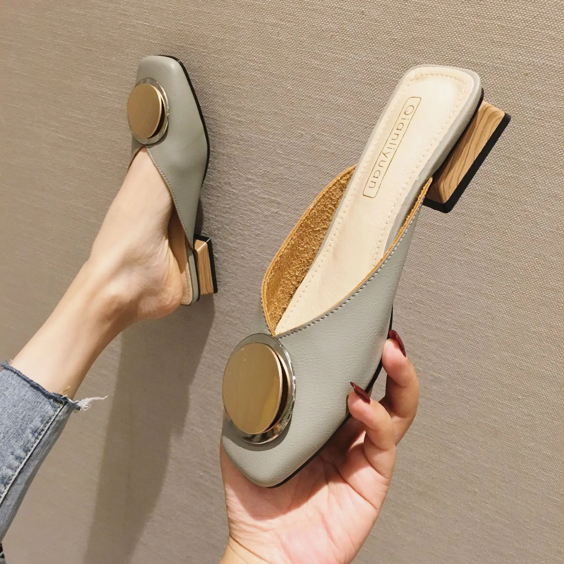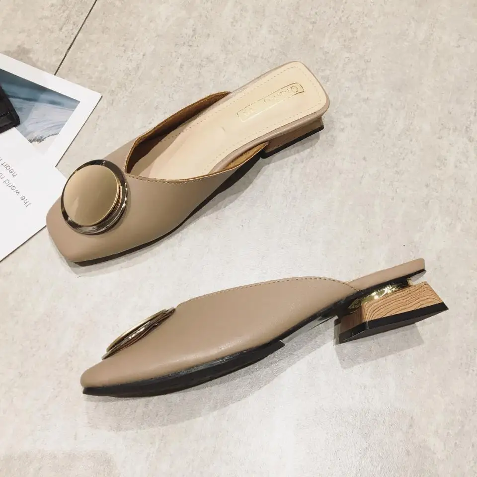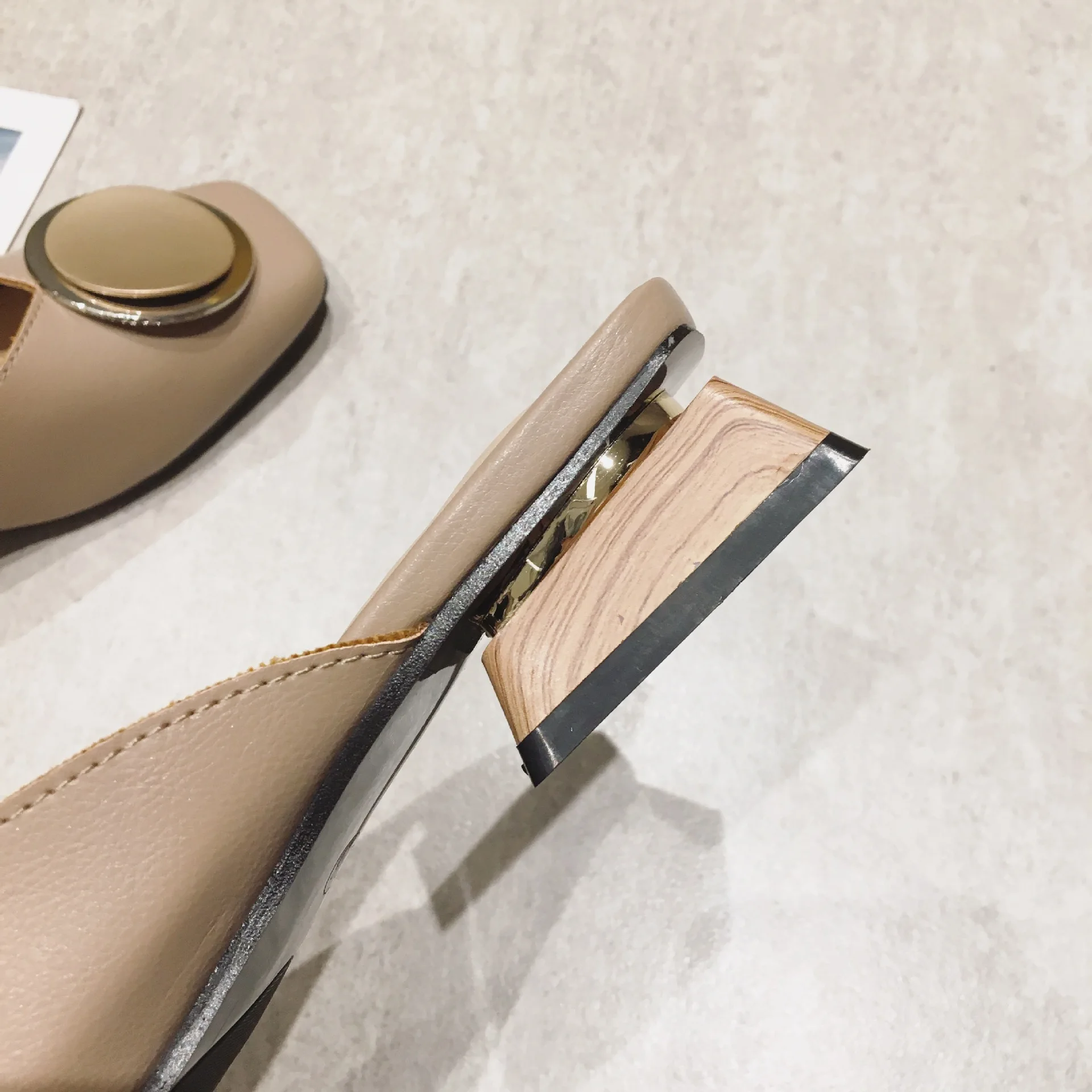 Женские сандалии на низком каблуке, с квадратным носком и металлическими пуговицами