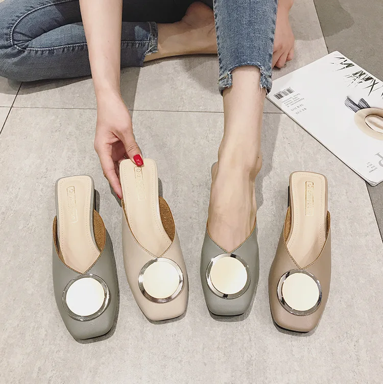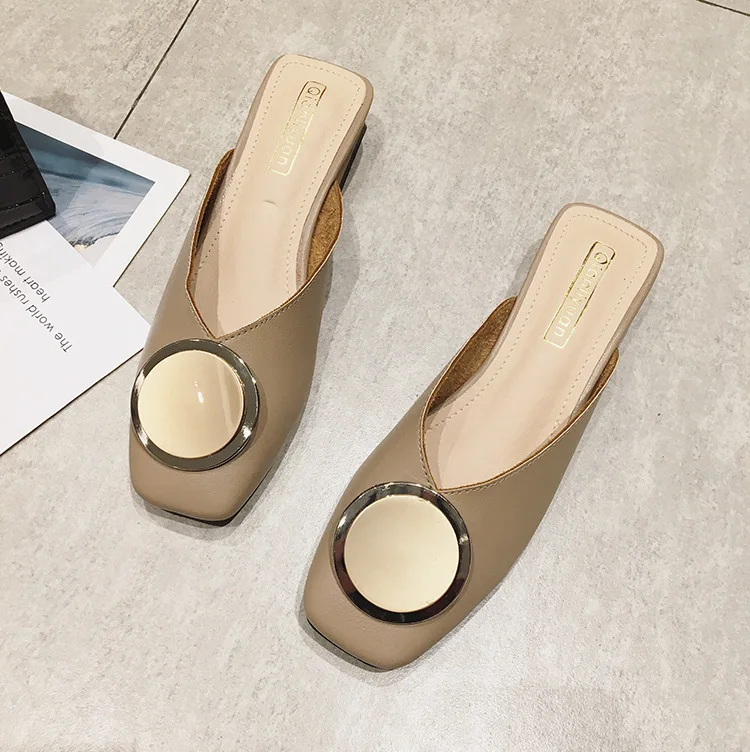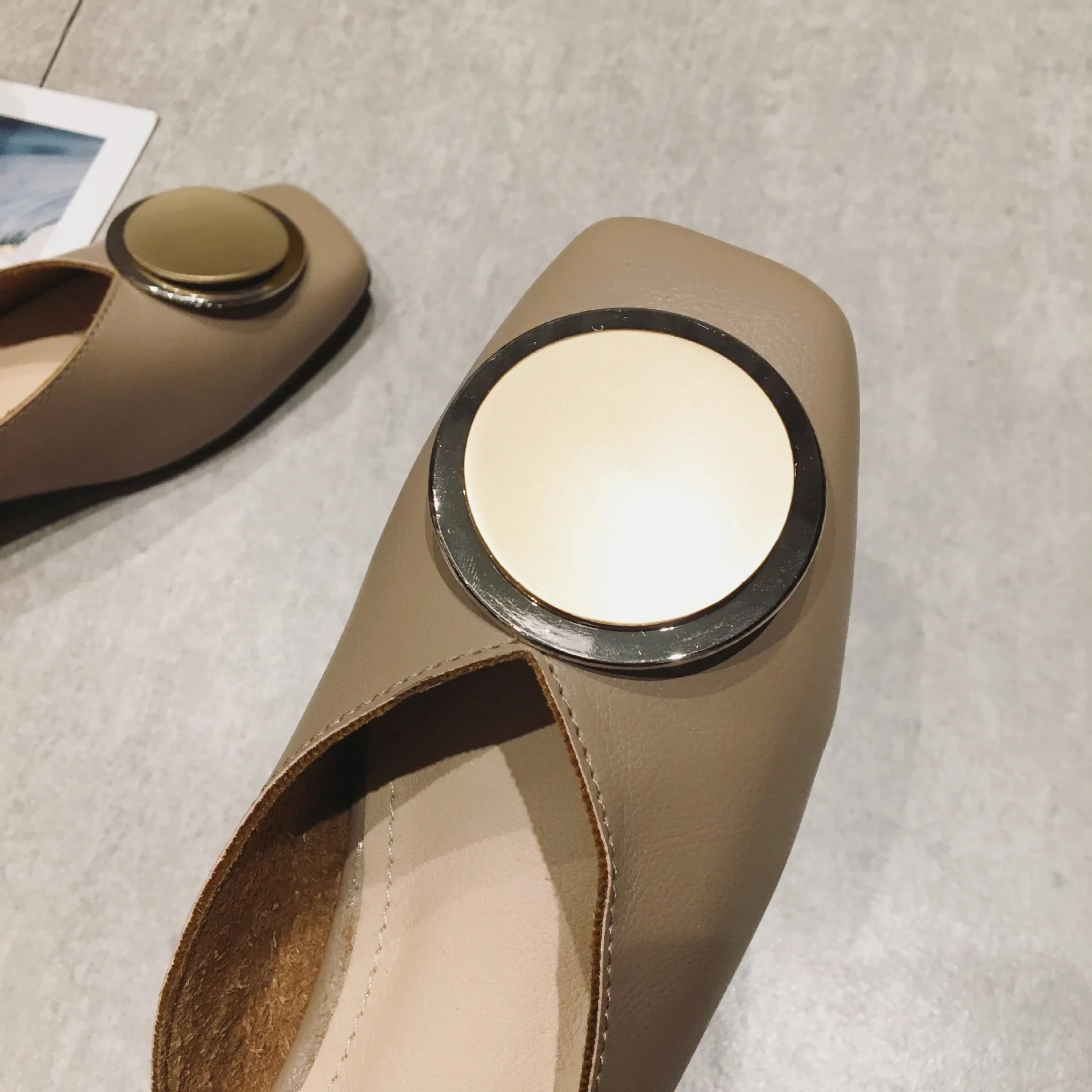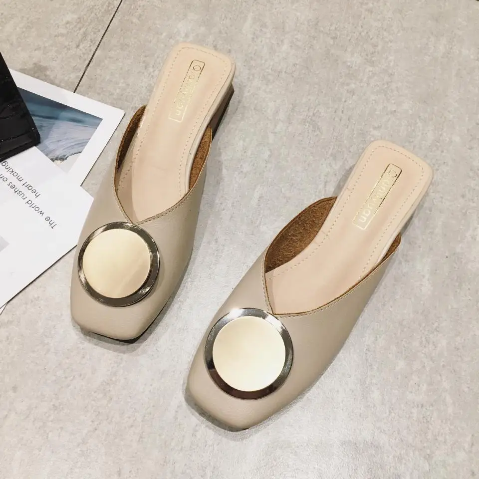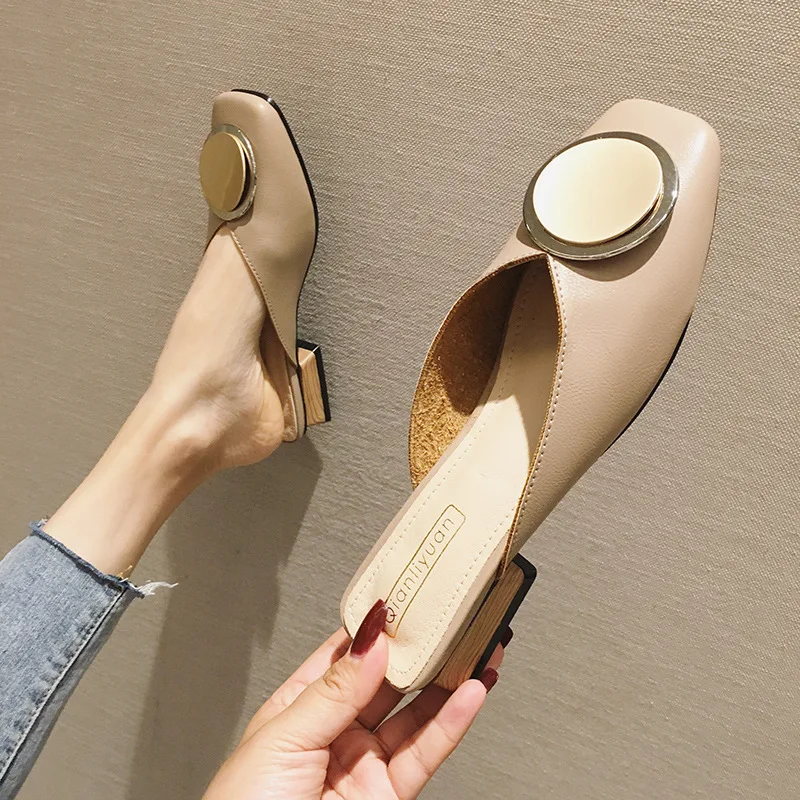 Женские сандалии на низком каблуке, с квадратным носком и металлическими пуговицами