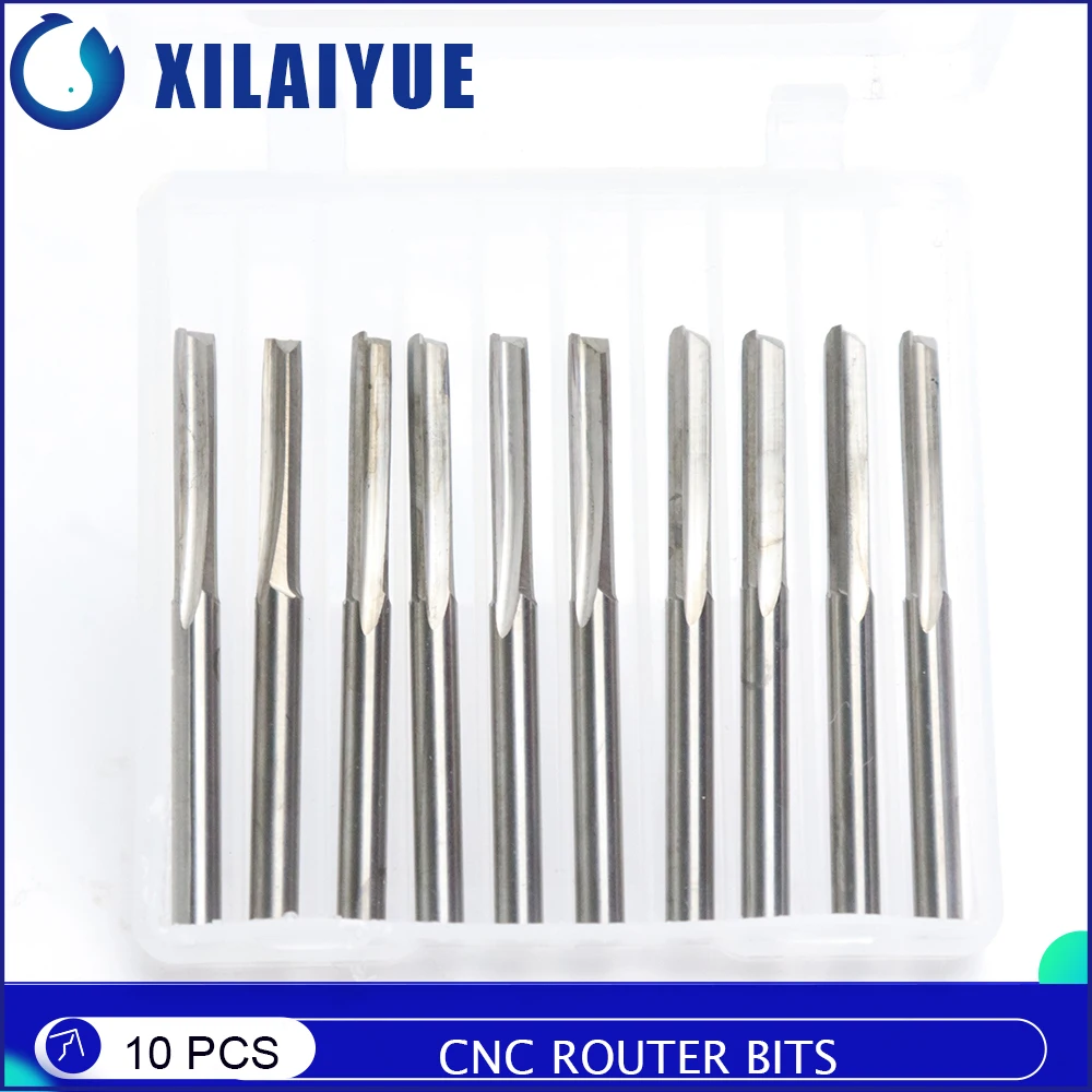 10 шт. Вольфрам Сталь ЧПУ фрезы для контурной обработки 2 каннелюра с прямым шлицем дерева МДФ-Фрезерование резак 3,175 мм хвостовик Диаметр