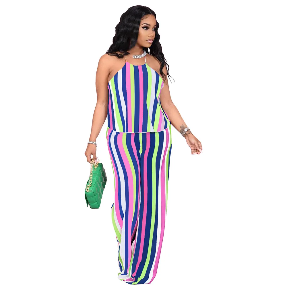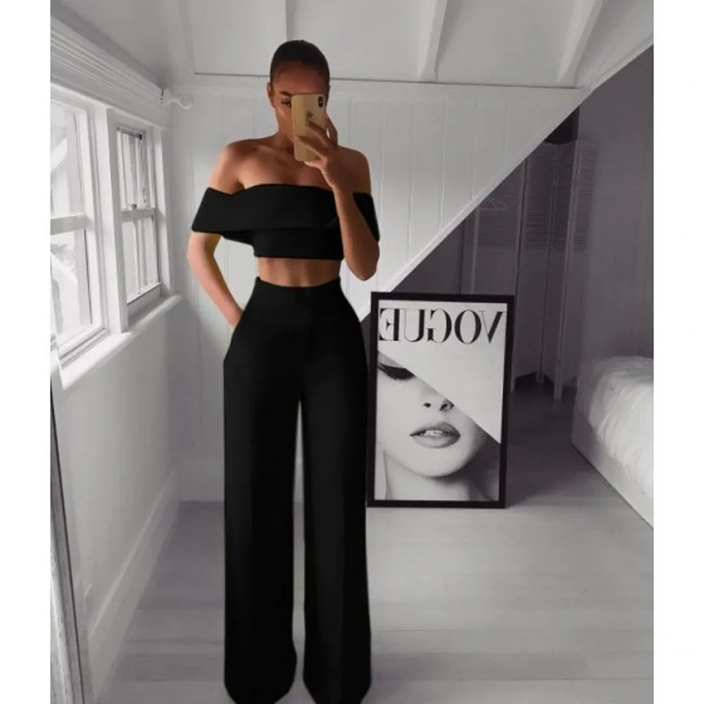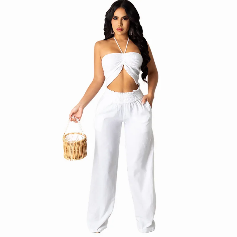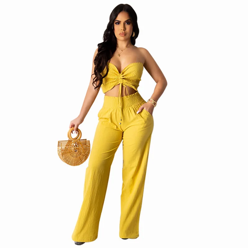Женский Повседневный костюм на бретельках, пикантный топик без груди + брюки, комплект из двух предметов, летний костюм с французскими узкими брюками с высокой талией, 2021 $20,35/Набор/лот 1