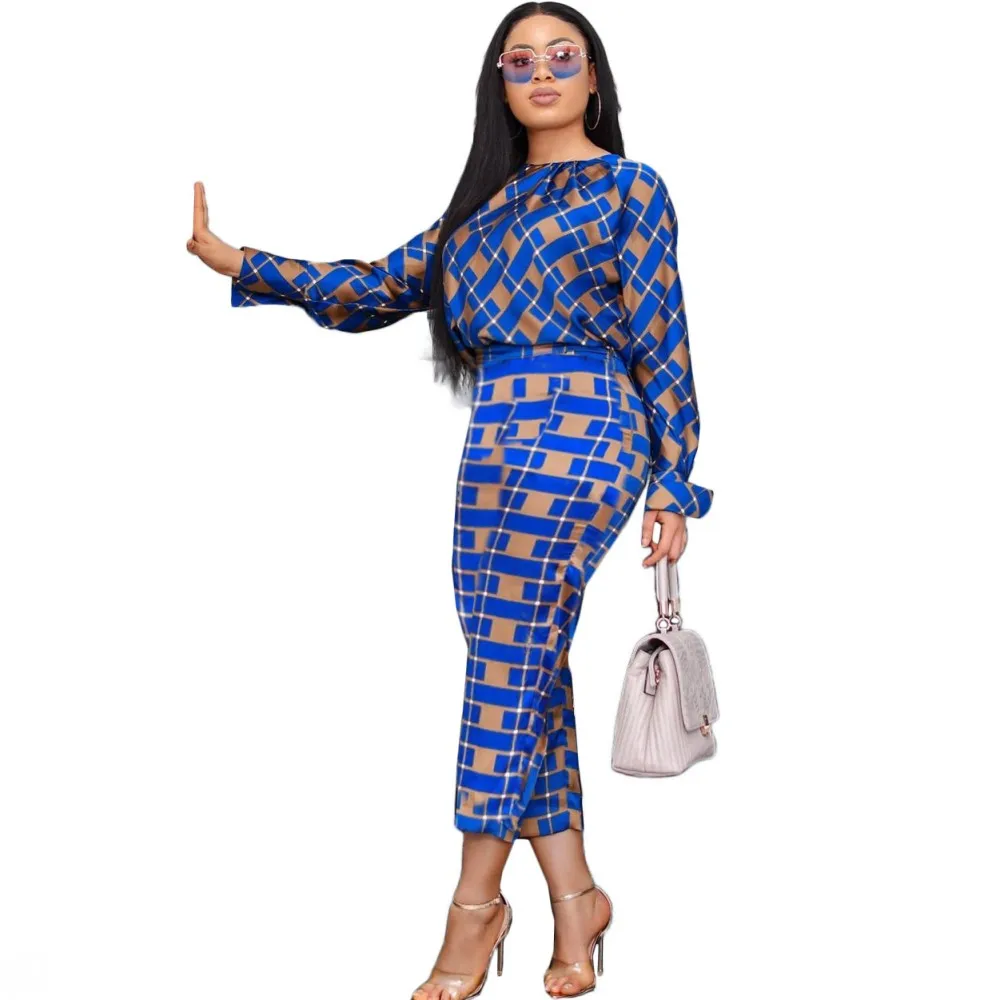 Костюм из двух предметов, африканская одежда, Новая модная женская Свободная футболка с длинными рукавами, брючный костюм в клетку, повседневный костюм на весну и осень 2021 $19,67/Шт/Лот 1