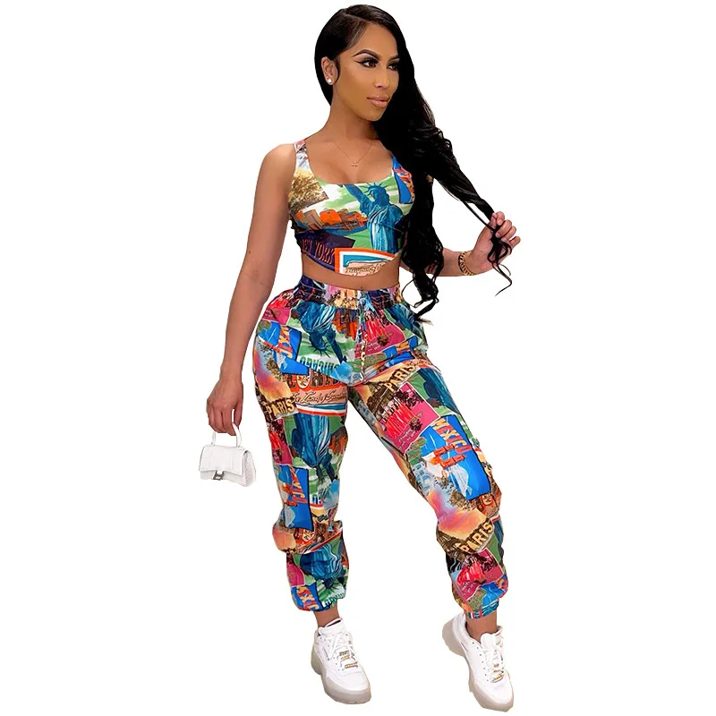 Сексуальный стильный женский жилет из двух частей с принтом Топ и брючный костюм с поясом для спорта и отдыха, новинка 2021, летняя Высококачественная африканская одежда $22,24/Набор/лот 1