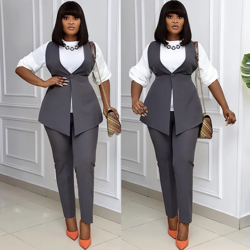 Женские брюки, комплект из трех предметов, модный тонкий профессиональный костюм, весна 2021, Новый Африканский костюм большого размера, узкие брюки-карандаш $38,8/Шт/Лот 1