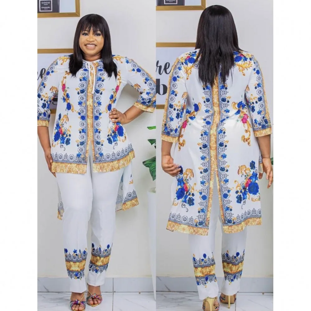 Повседневный костюм с брюками в африканском стиле размера плюс, женский топ с длинными рукавами и принтом Дашики + прямые брюки, комплект из двух предметов, новинка 2021, африканская одежда $31,9/Набор/лот 1