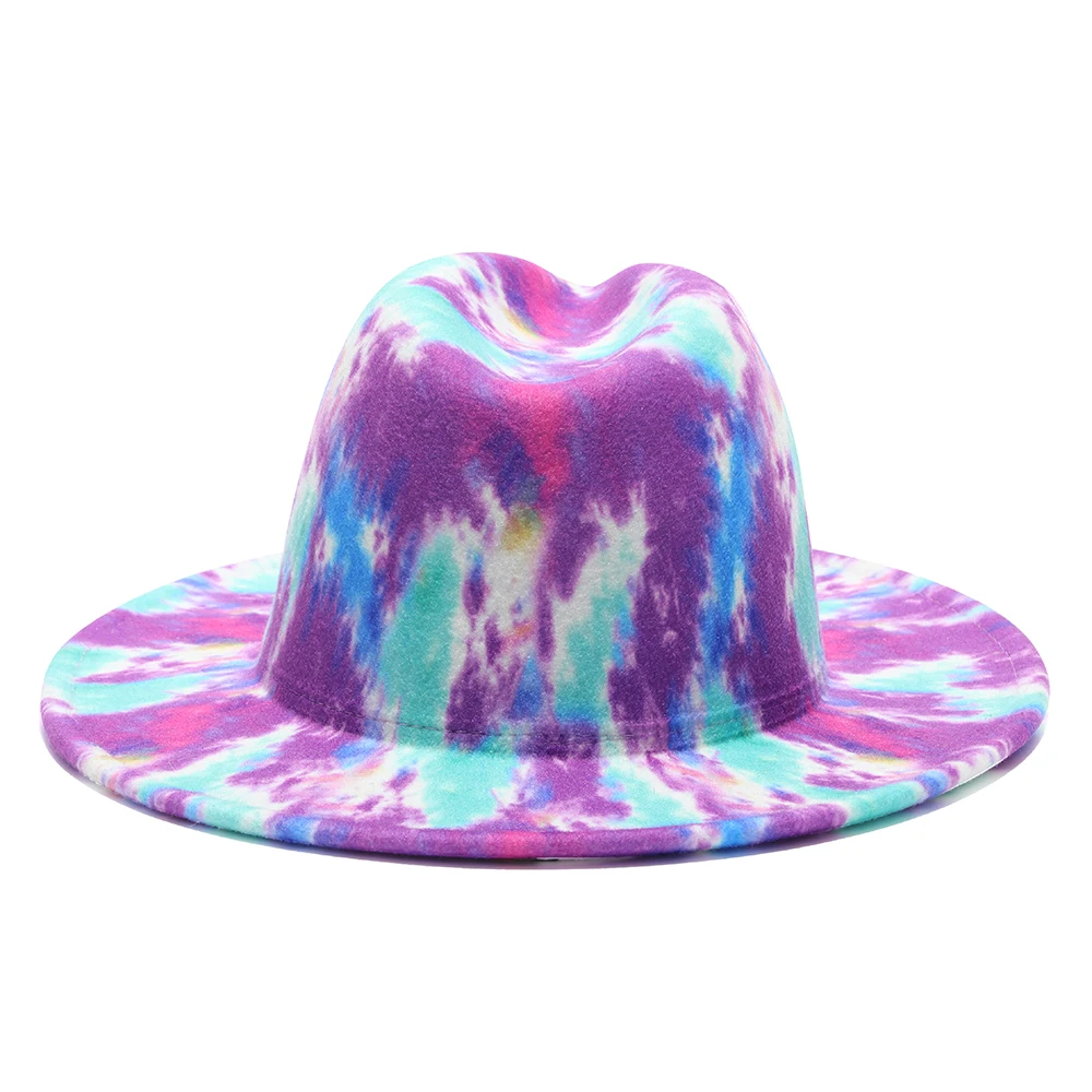Фетровая шляпа, с широкими полями, с принтом тай-дай
