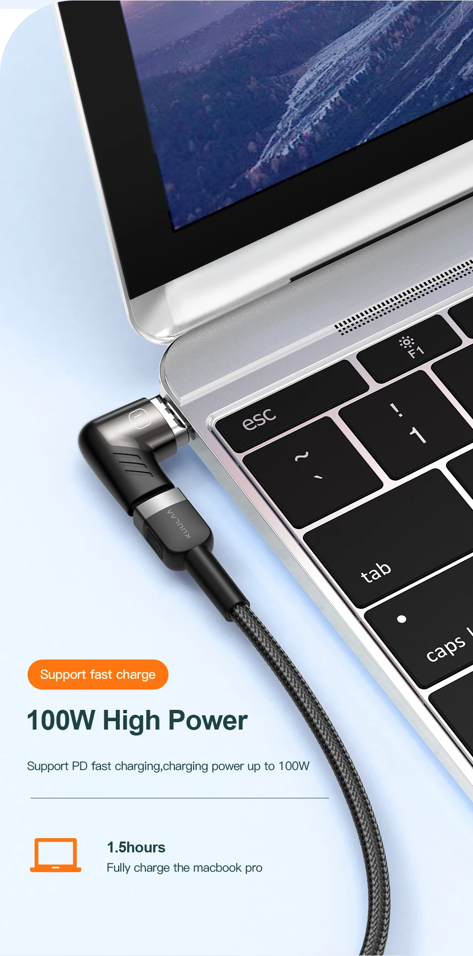 Магнитный адаптер KUULAA 100 Вт Type-C для MacBook Pro Air, угловой...