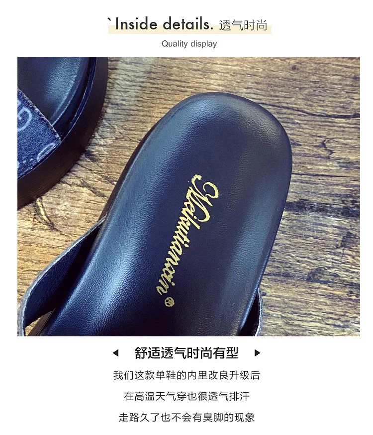 Женские джинсовые шлепанцы на толстом каблуке 11 см, большие размеры