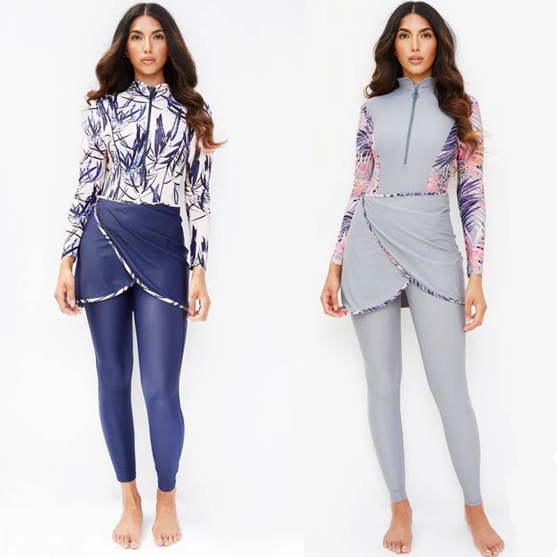 2021 мусульманский женский купальник София хиджаб с длинными рукавами спортивный скромный лоскутный Купальник 3 шт. Исламская одежда Буркини купальный костюм 4XL